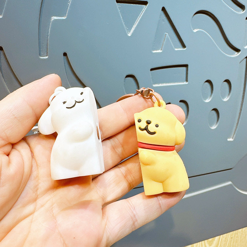 📚 治愈系一二布布包包公仔挂件情侣一人一半礼物磁吸线条小狗钥匙扣