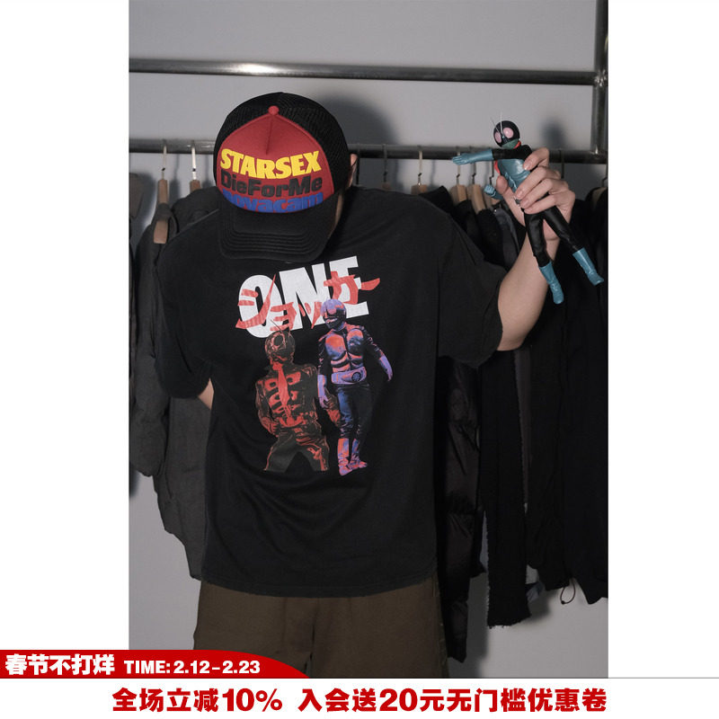 📚 NOVACAM 主理人定制款印花T恤美式高街反缝线VINTAGE磨边水洗短袖