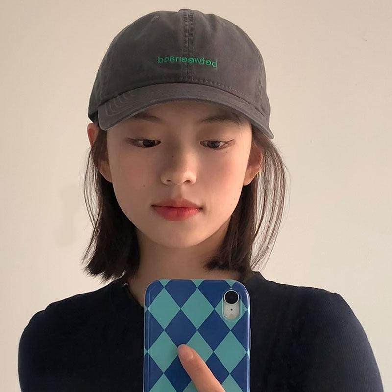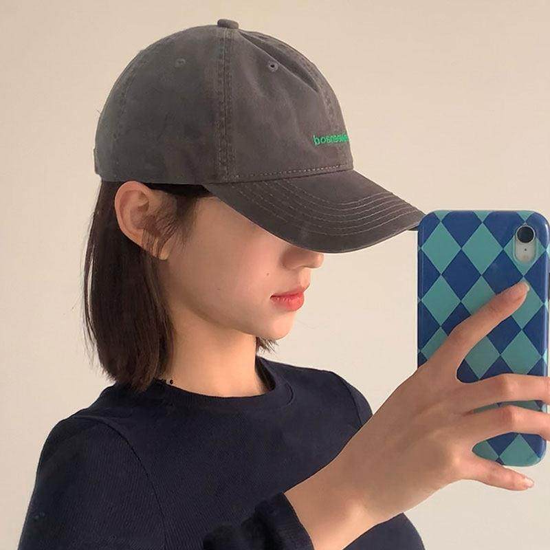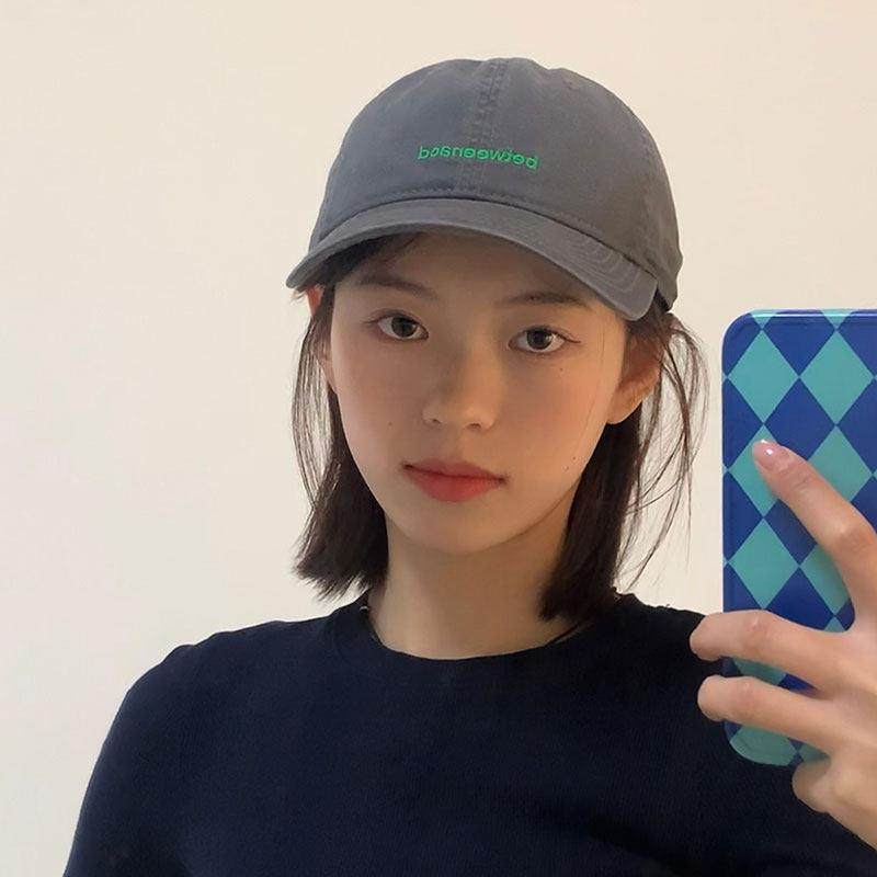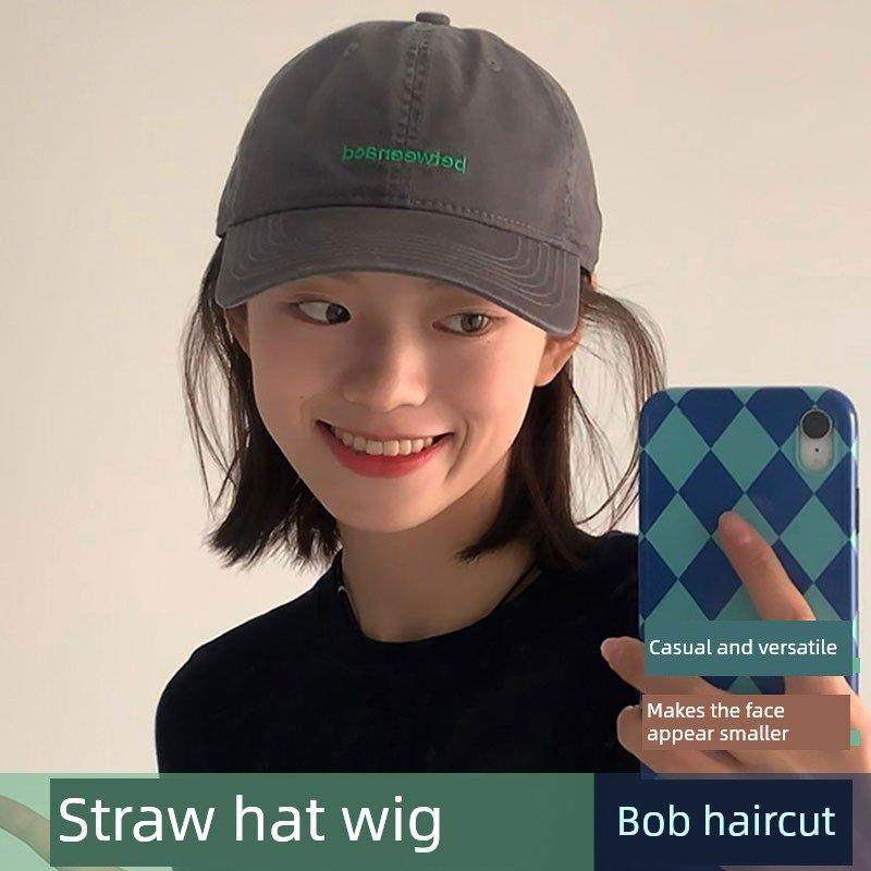 📚 大头炭灰色棒球帽假发一体式妇女夏季休闲多才多艺绣字母软顶帽太