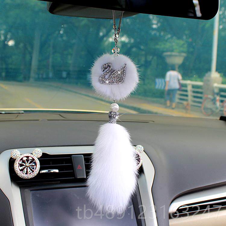 📚 正品天汽国车挂件车吊饰高档鹅女内士狐狸毛韩可爱车载吊坠车上挂