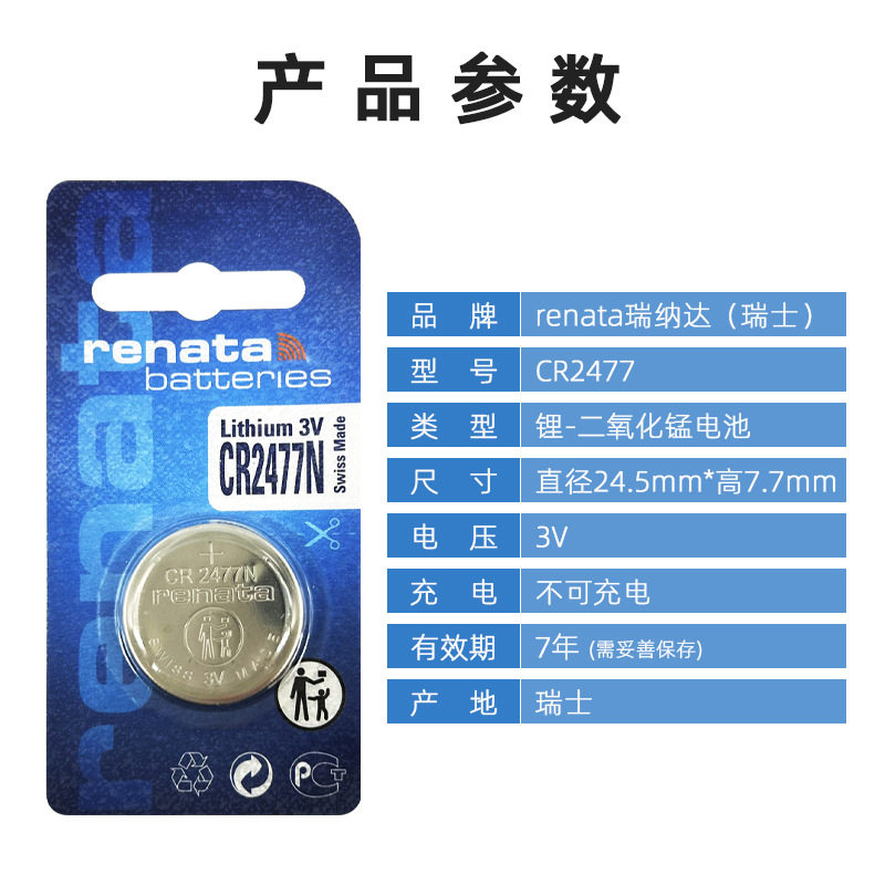 📚 德国日本进口技术瑞士renata纽扣电池CR2477N汽车钥匙3V锂电子钮