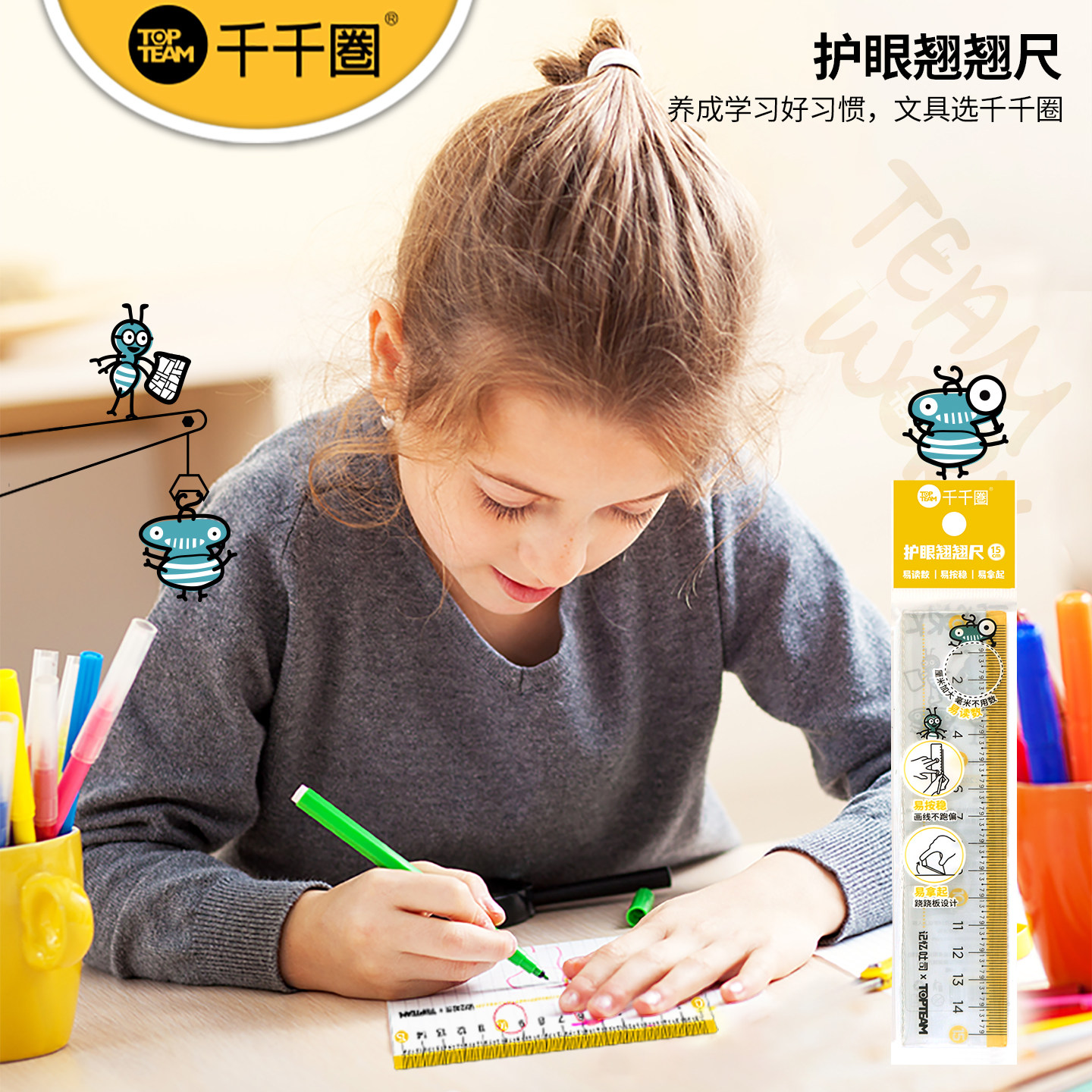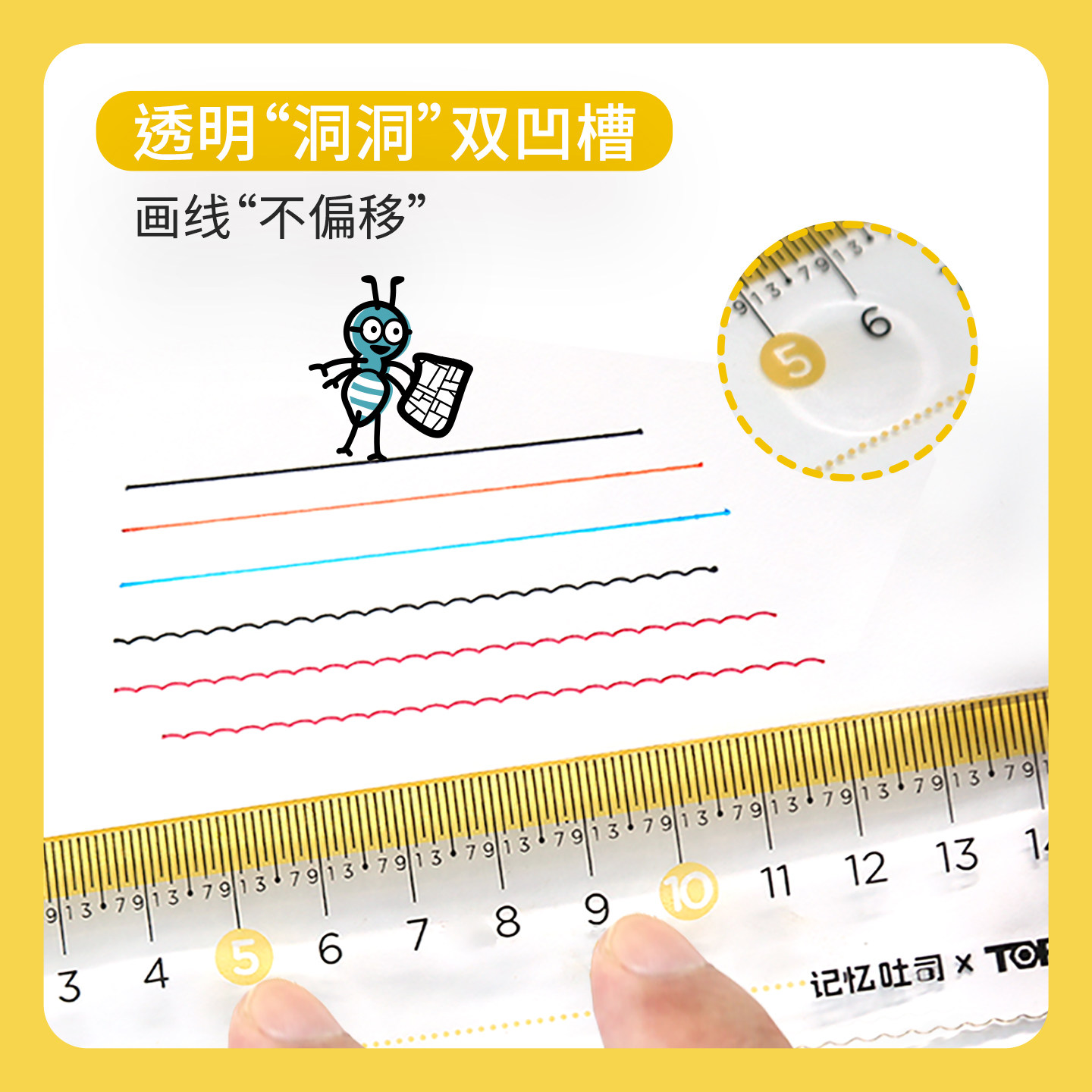 📚 千千圈记忆吐司联名大刻度带波浪小学生文具尺子护眼防近视翘翘尺