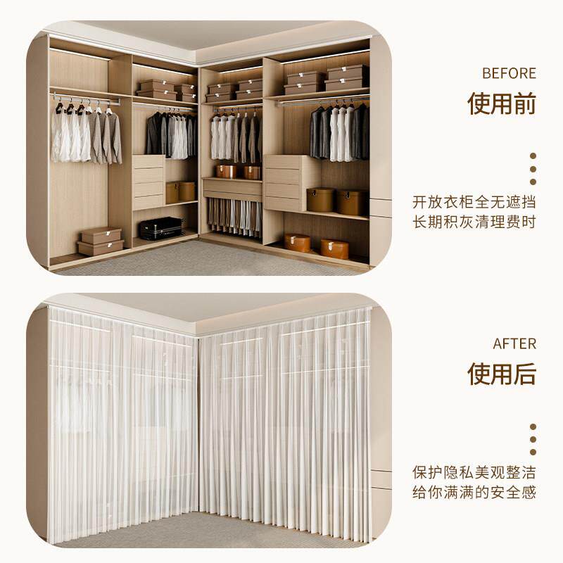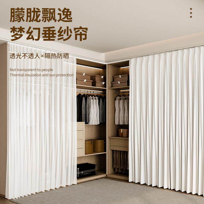 📚 衣柜门帘遮挡帘免打孔卧室客厅隔间帘子衣橱衣帽间防尘帘白色纱帘