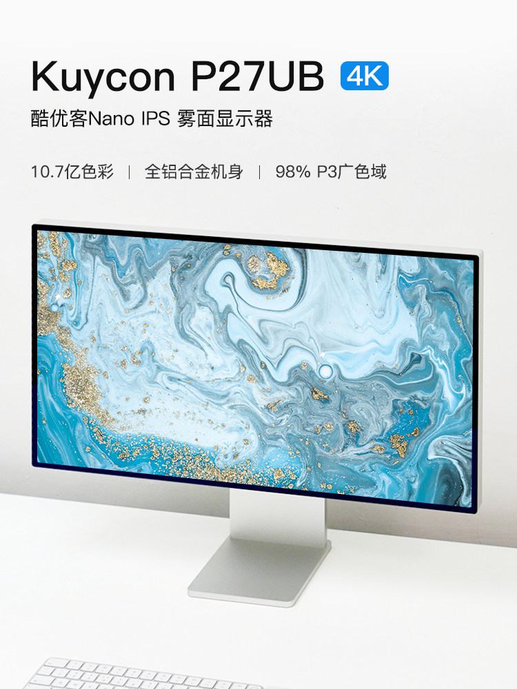 📚 Kuycon27寸4K显示器设计摄影剪辑100w反向充电铝合金雾面屏P27UB