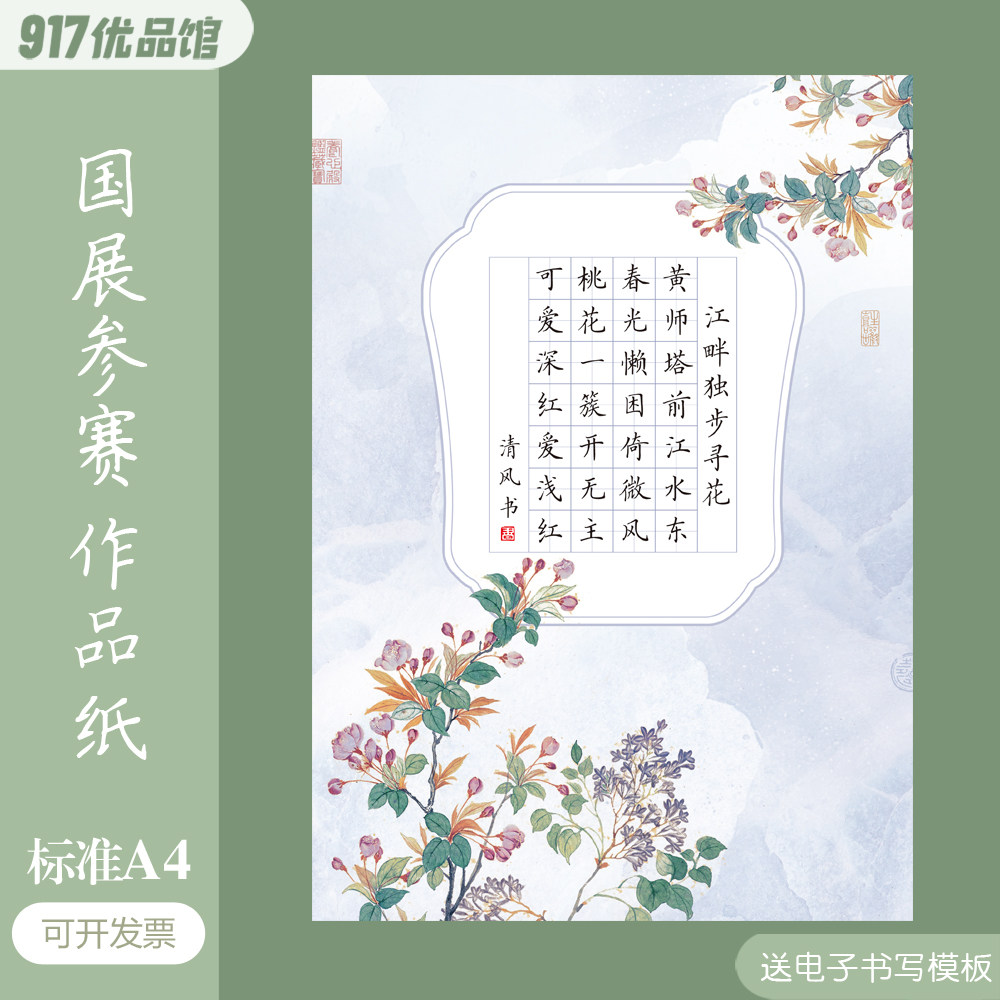 📚 标准A4硬笔书法作品纸20格28格五言七言绝句学生比赛参赛1.5田格