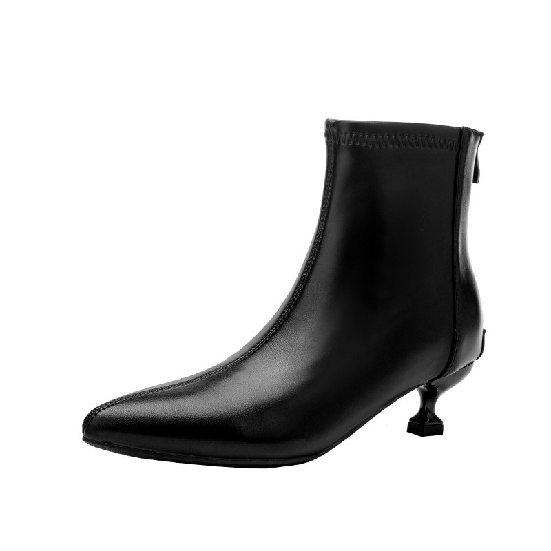 📚 黑色小跟短靴女3cm细跟尖头2025秋冬高跟工作鞋单靴裸靴软高跟鞋