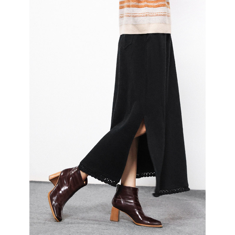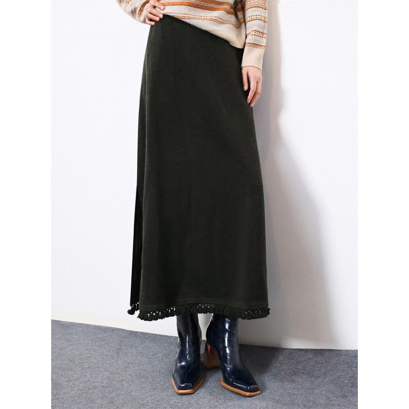 📚 KAKA英国客单强缩羊毛保暖名媛老钱风流苏边松紧腰A字长款半身裙