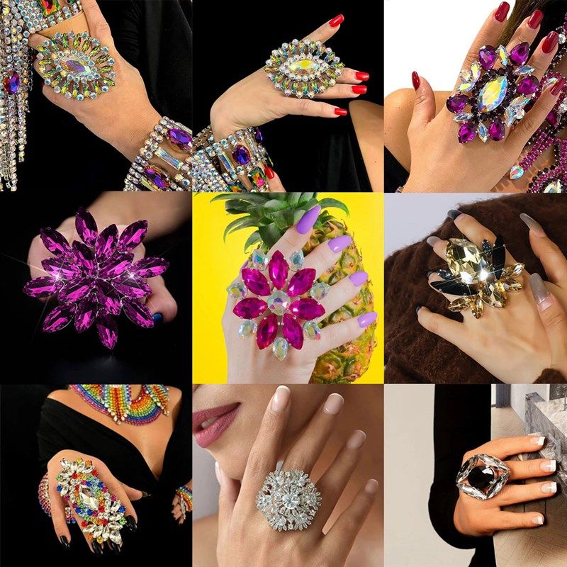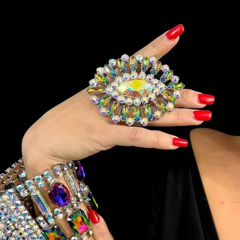 📚 欧美夸张宴会礼服宝石开口戒指指环女时尚百搭P个性夜店演出配饰