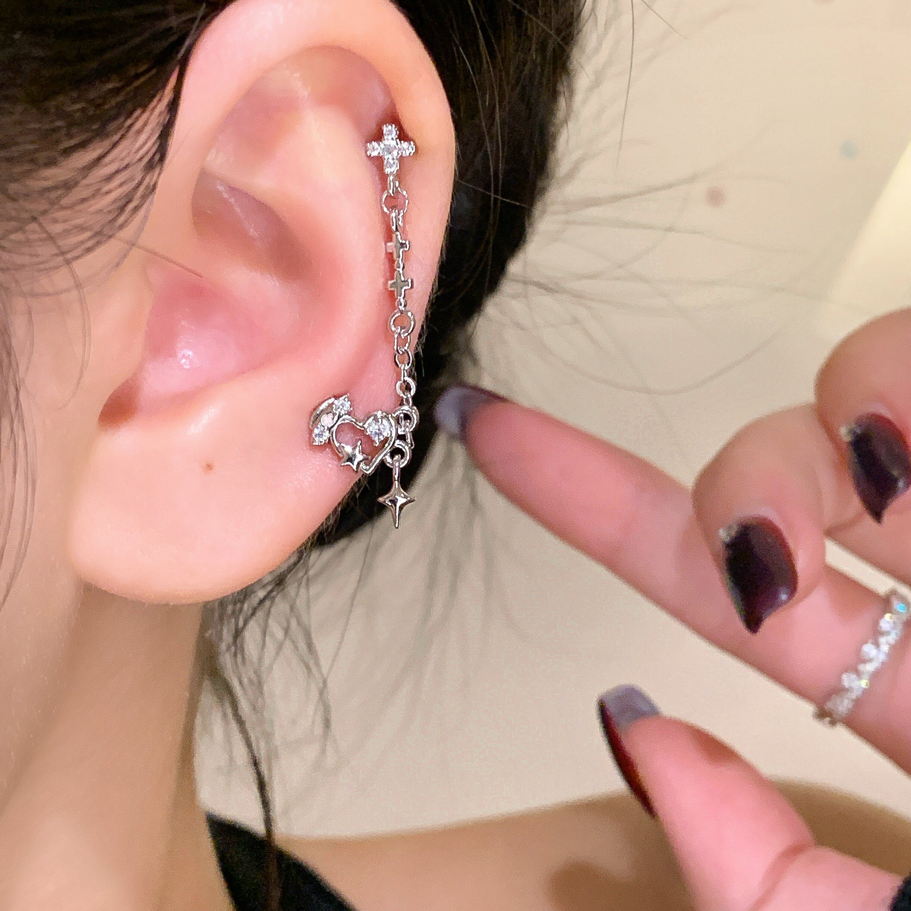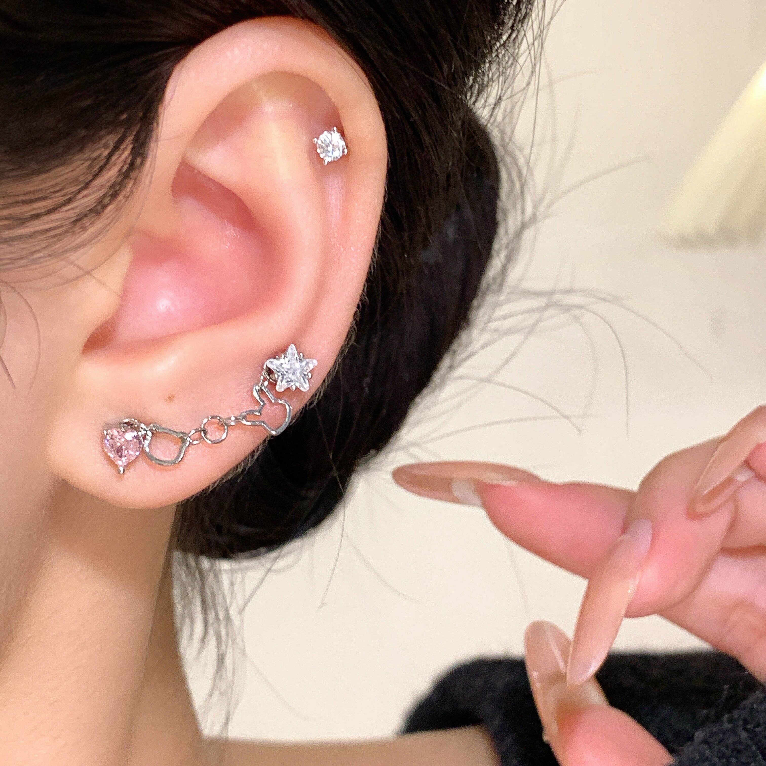 📚 嘟嘟夫妇双耳洞耳钉一体式链条耳饰螺丝拧扣医用钛钢耳骨钉耳链女