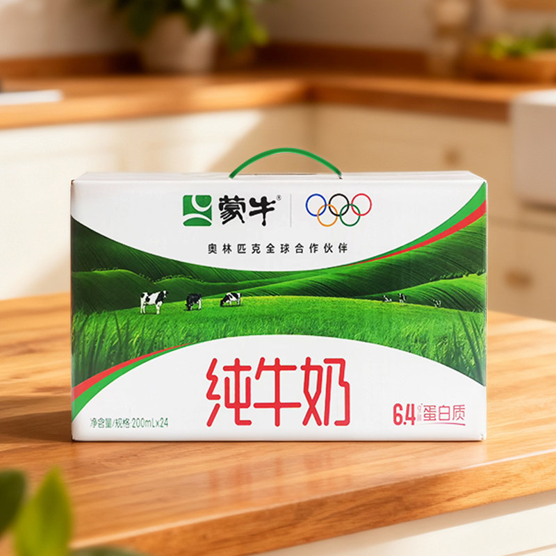 📚 1月产蒙牛纯牛奶200mL*24盒整箱儿童营养高端早餐牛奶送礼方包tjb