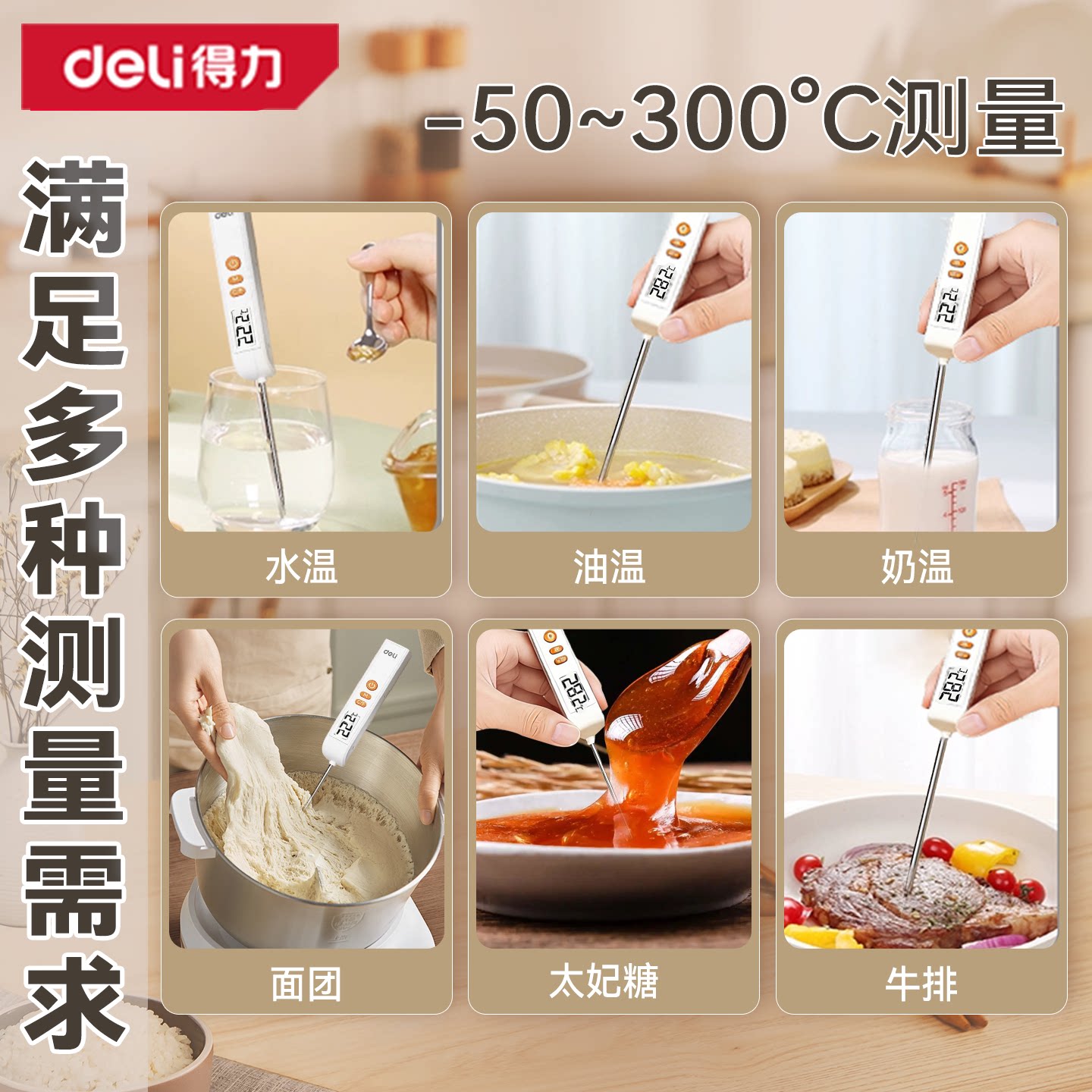 📚 得力烘焙专用温度计厨房用高精度食品级温度计油温水温计婴儿奶水
