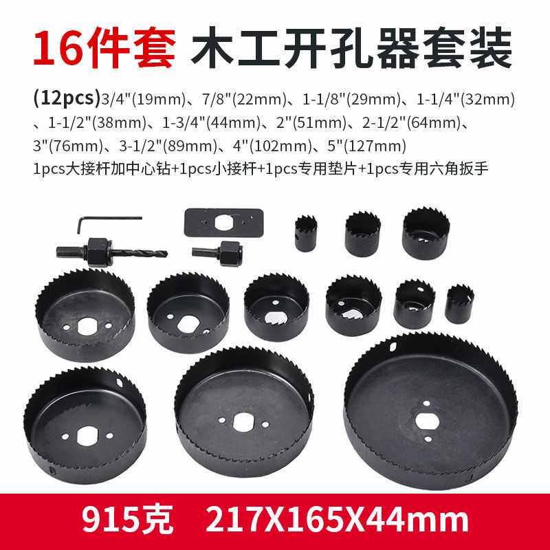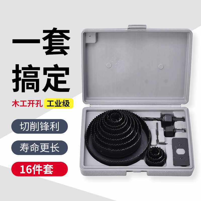 📚 木工开孔器16件套多功能钻头石膏板木板薄板五金工具打孔器