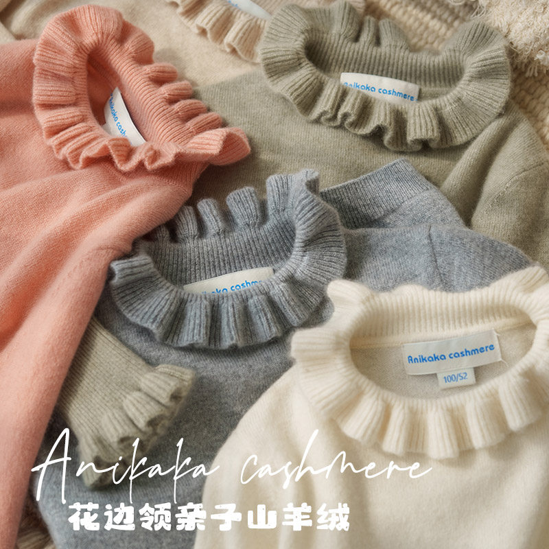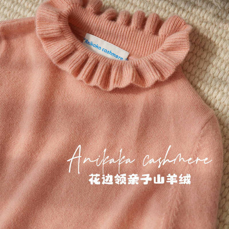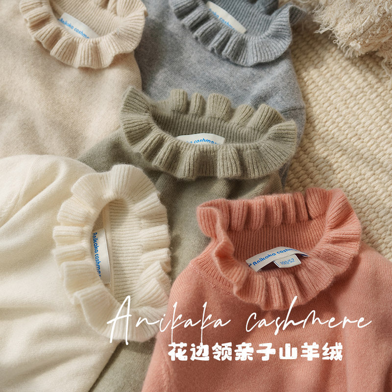 📚 Anikaka秋冬新款女童宝宝花边领100山羊绒打底衫儿童木耳边毛衣