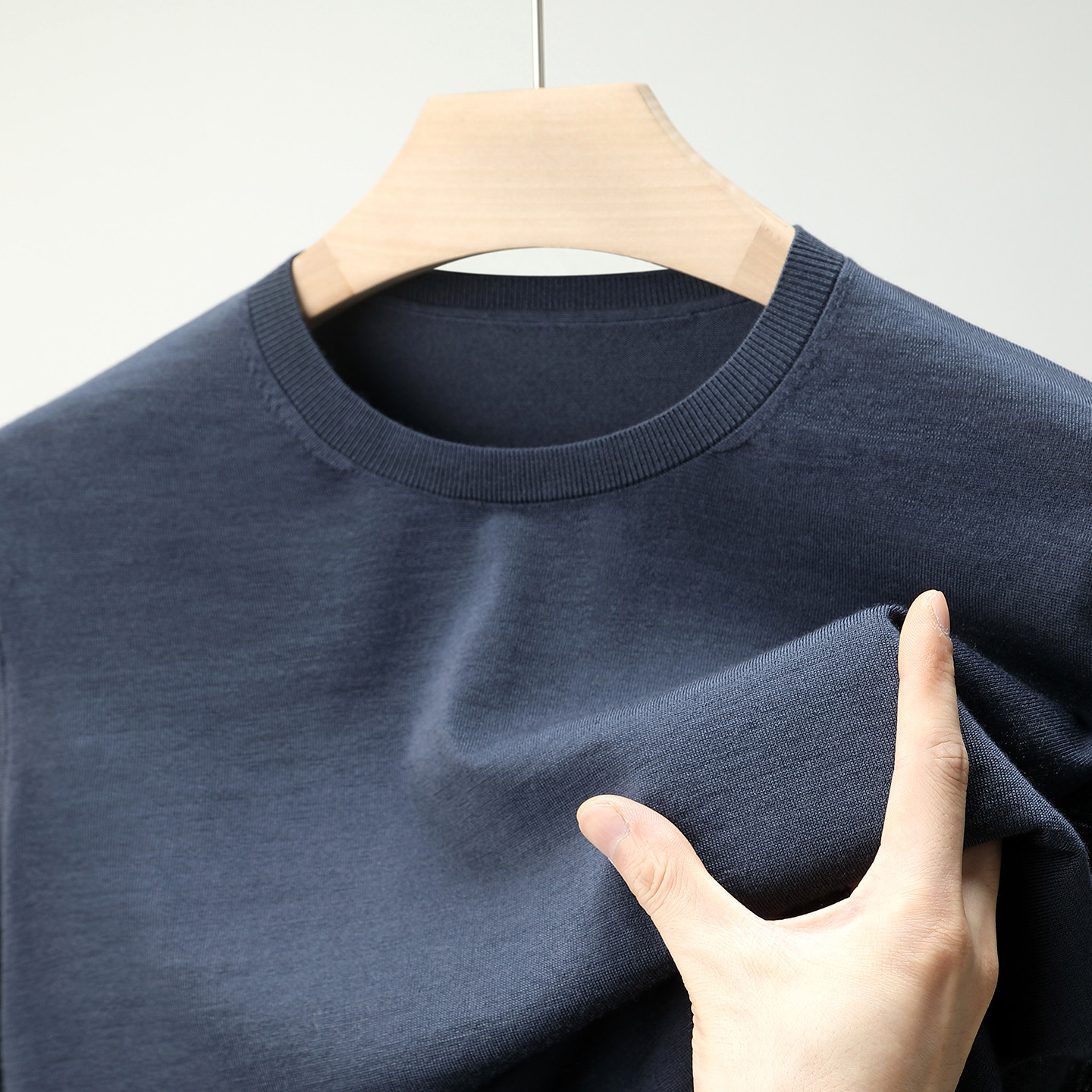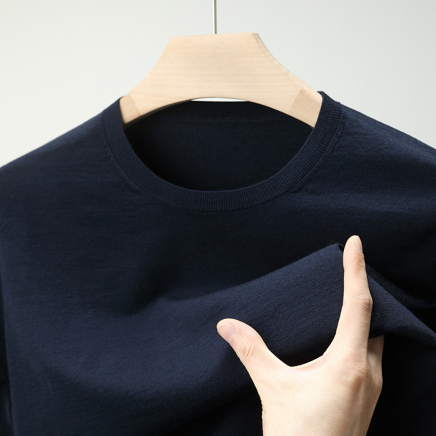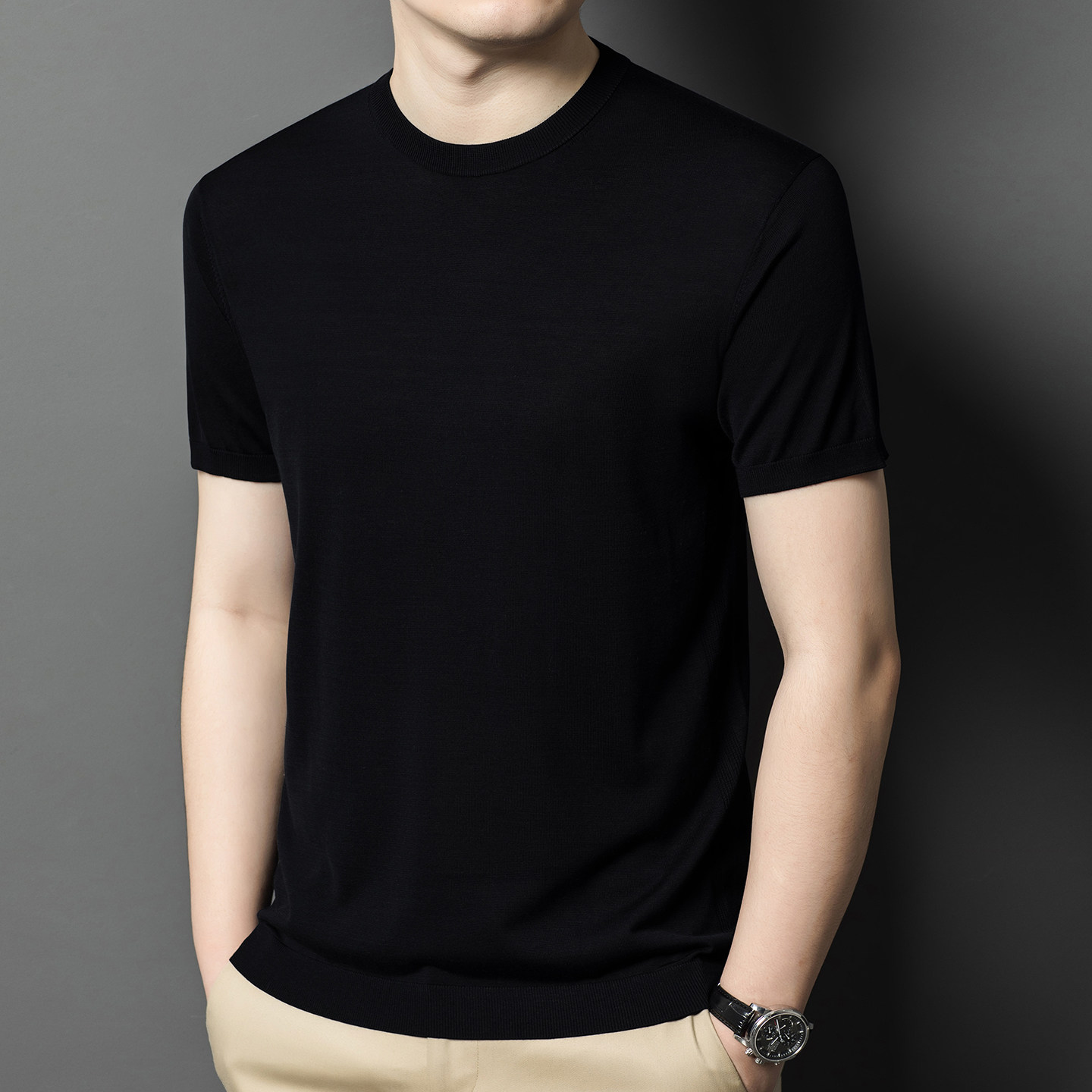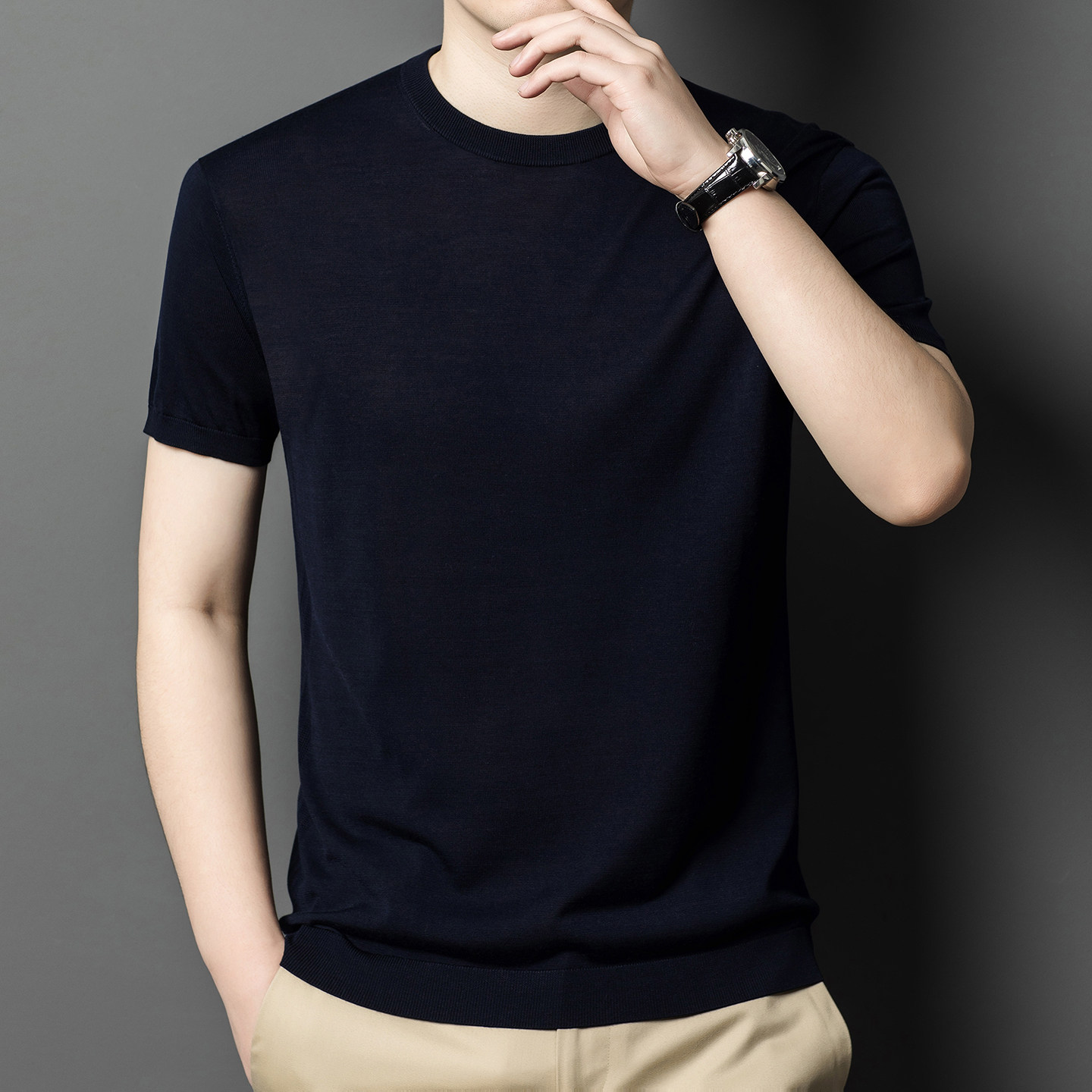 📚 超薄60支精纺纯羊毛衫男圆领高端质感针织超细美丽诺羊毛T恤短袖