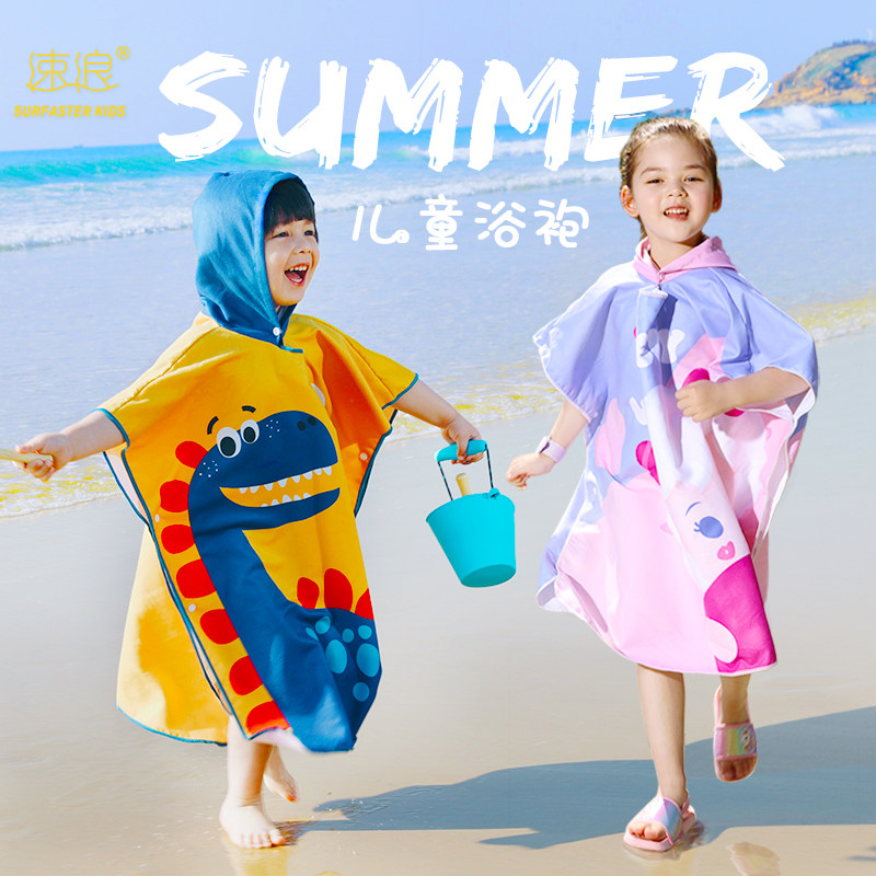 📚 速浪儿童速干浴巾游泳斗篷浴袍吸水便携沙滩巾带帽男童