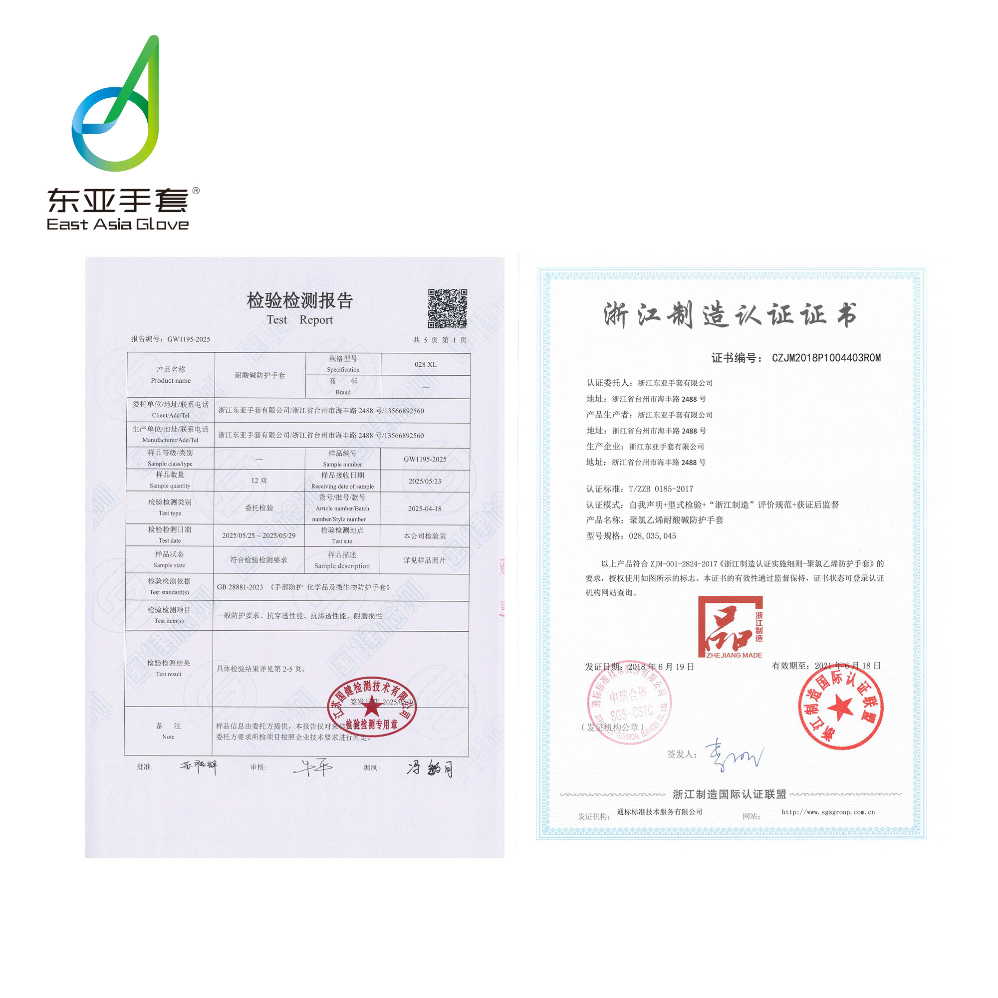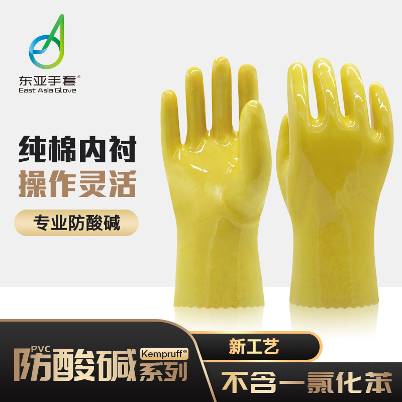 📚 东亚手套028 035 045耐酸碱防腐蚀耐磨工业化学防护浸塑劳保手套