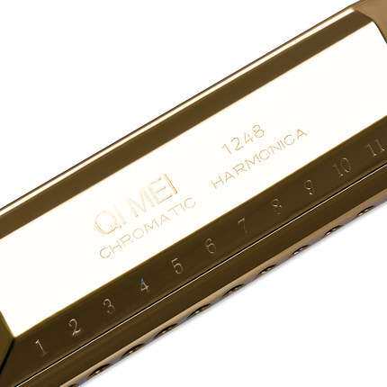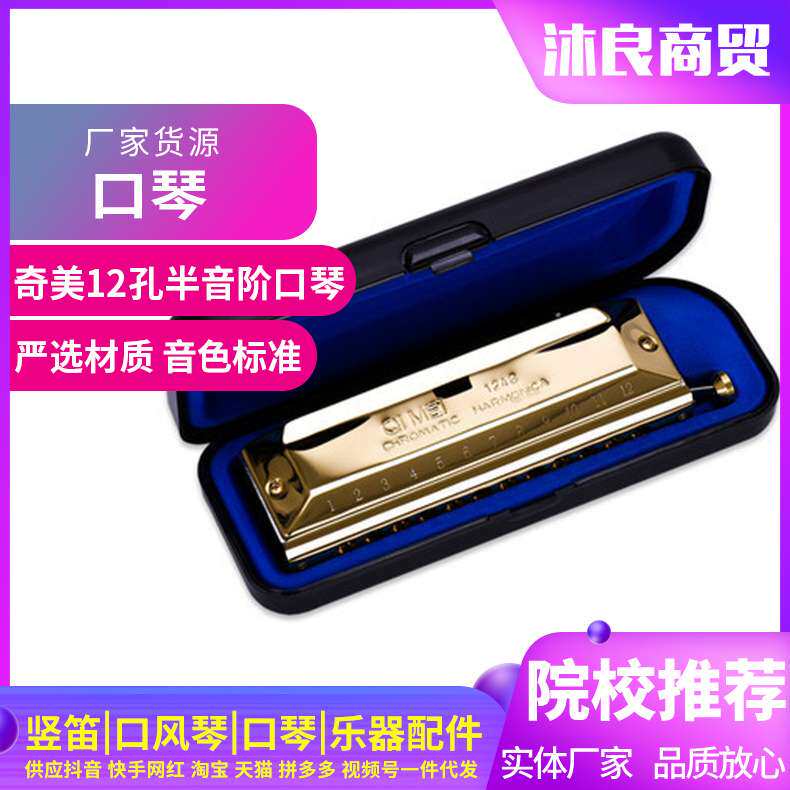 📚 厂家 奇美12孔48音圆吹口琴金色音半音阶初学者入门者演奏口