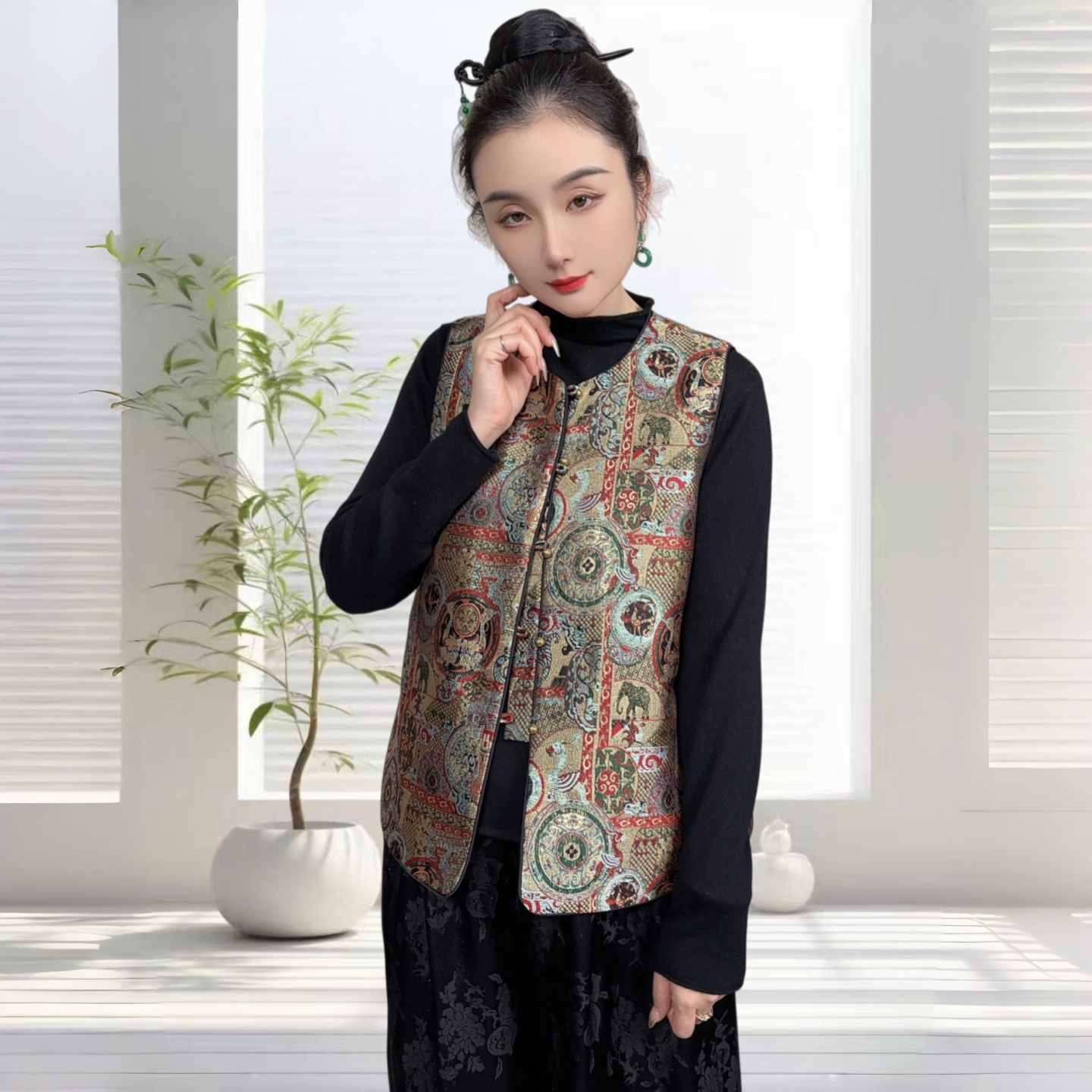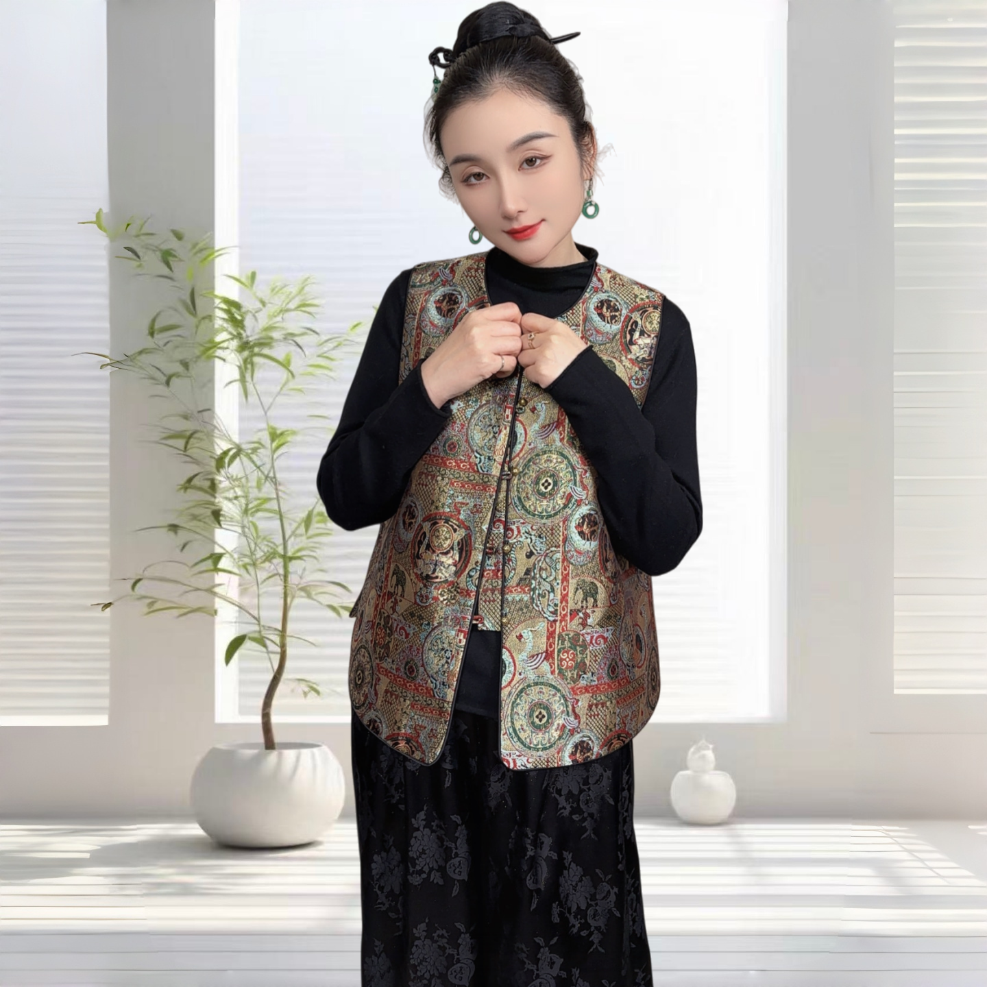 📚 三马新中式国风100%桑蚕丝唐锦【吉象凤鸟】A字版四季款高端马甲