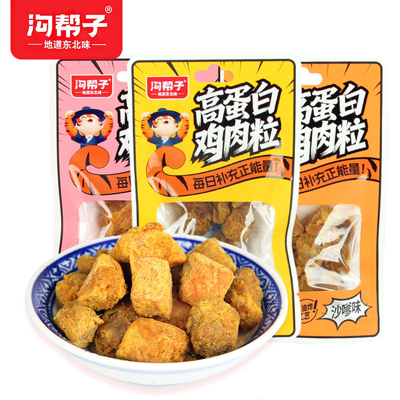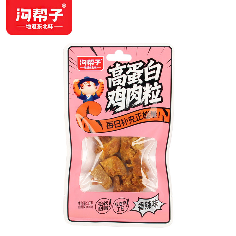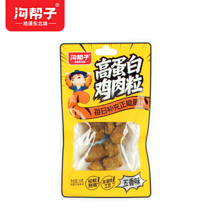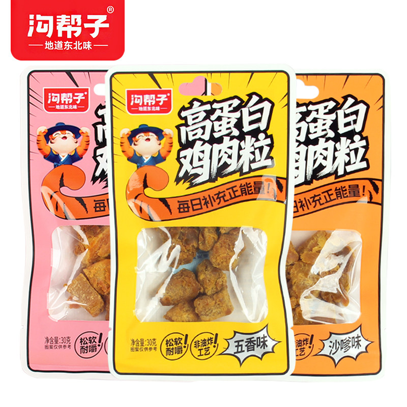 📚 沟帮子新品高蛋白鸡肉粒鸡块即食鸡肉粒零食沙嗲五香味30g*10袋子
