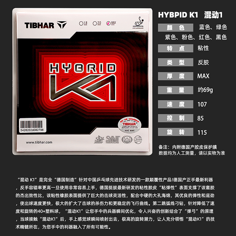 📚 TIBHAR挺拔乒乓球拍胶皮k1MAX进口蛋糕海绵反胶乒乓球套胶胶皮