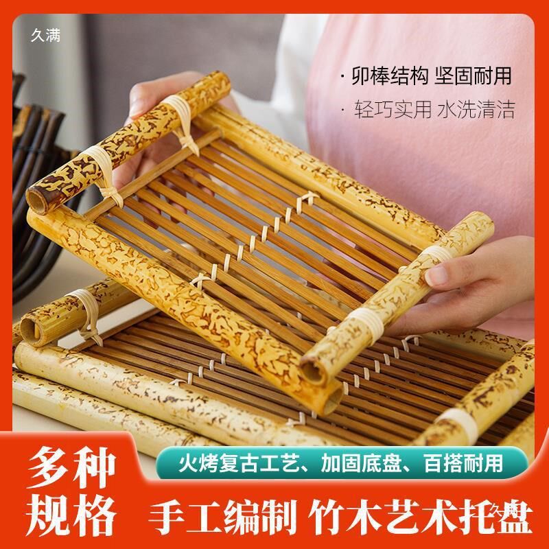 📚 速发手餐竹编托盘长方形竹木质酥肉盘子乳鸽盘中店用家用酒式创意