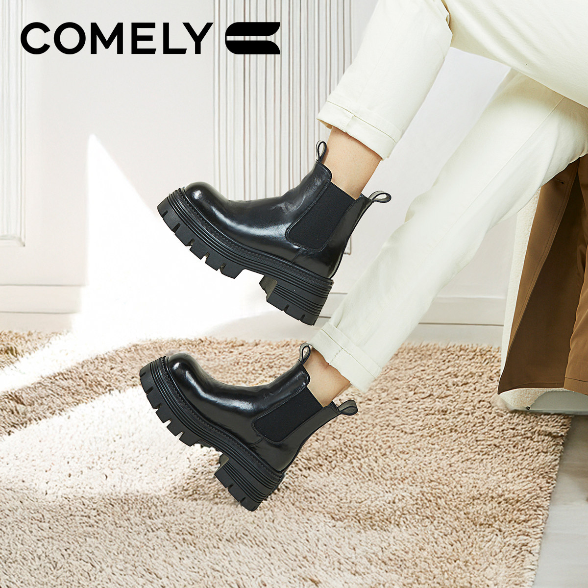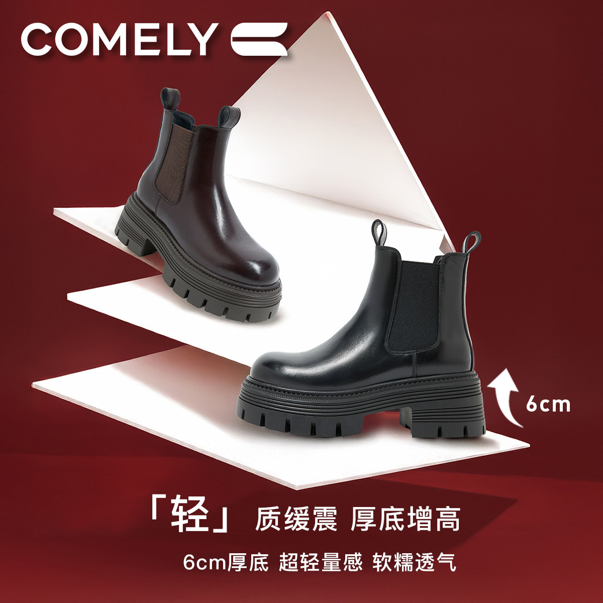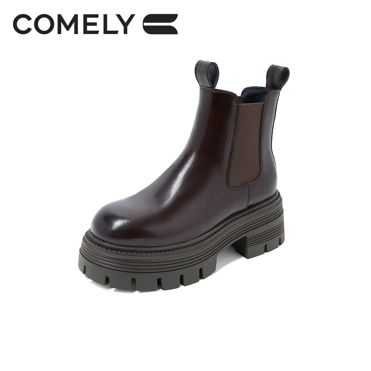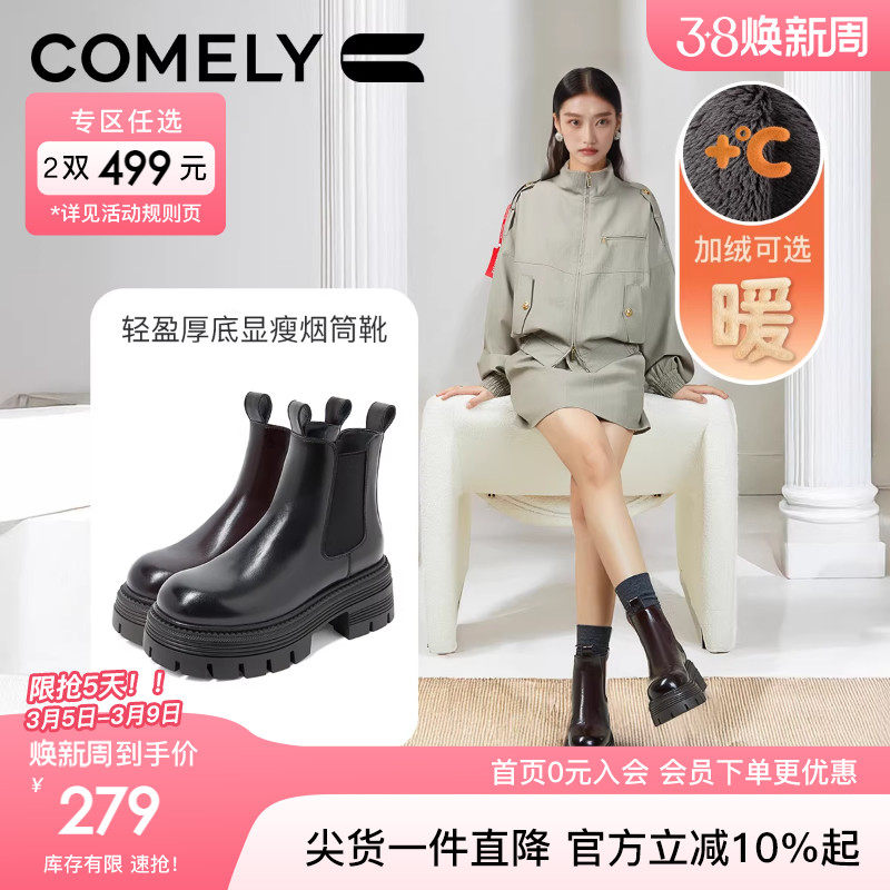 📚 康莉厚底切尔西靴女24年冬季新款女士真皮加绒高级感中筒大码短靴