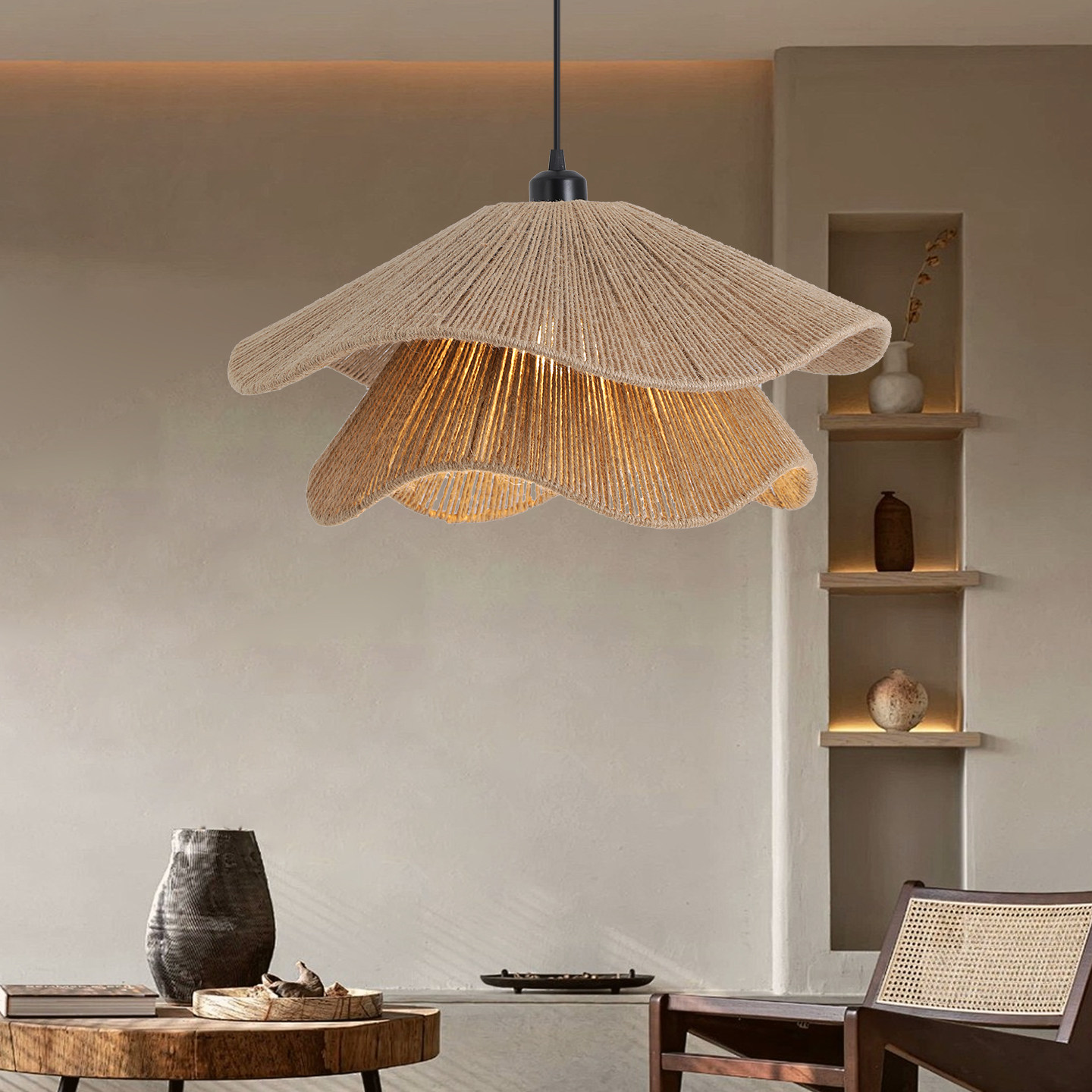 📚 日式麻绳餐厅吊灯侘寂风创意卧室民宿书房编织灯具禅意茶室绳编灯