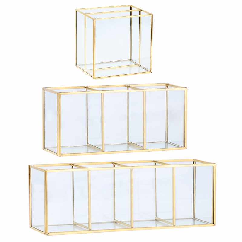 📚 Gold Glass Makeup Brush Holder Storage Container Ring Earrin