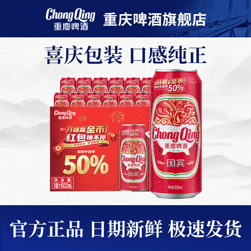 📚 重庆啤酒国宾啤酒 官方正品 日期新鲜 500ML12罐装火锅啤酒