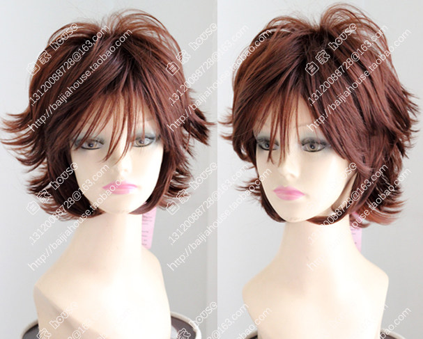 📚 假发 红棕色俏丽小卷发 翻翘短卷发 商务时尚干练清新自然欧美款