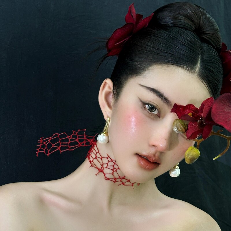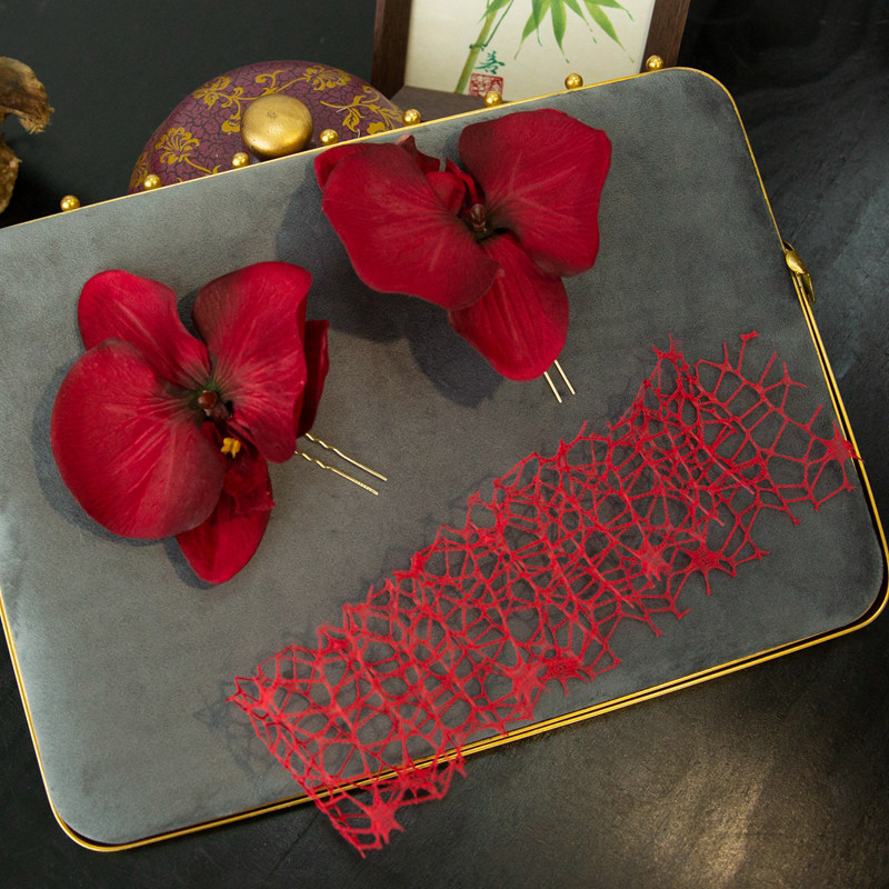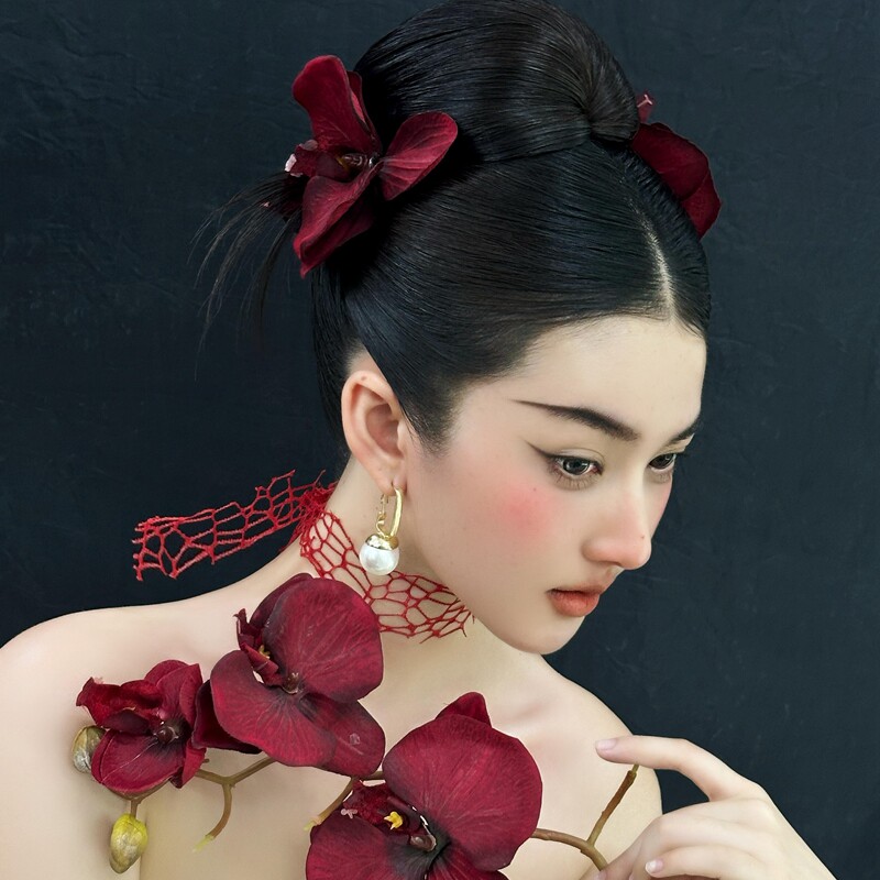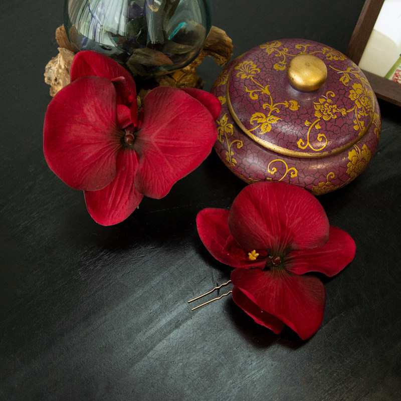 📚 水舞B2901中式古典仿真红色蝴蝶兰发簪套装气质旗袍造型古风配饰