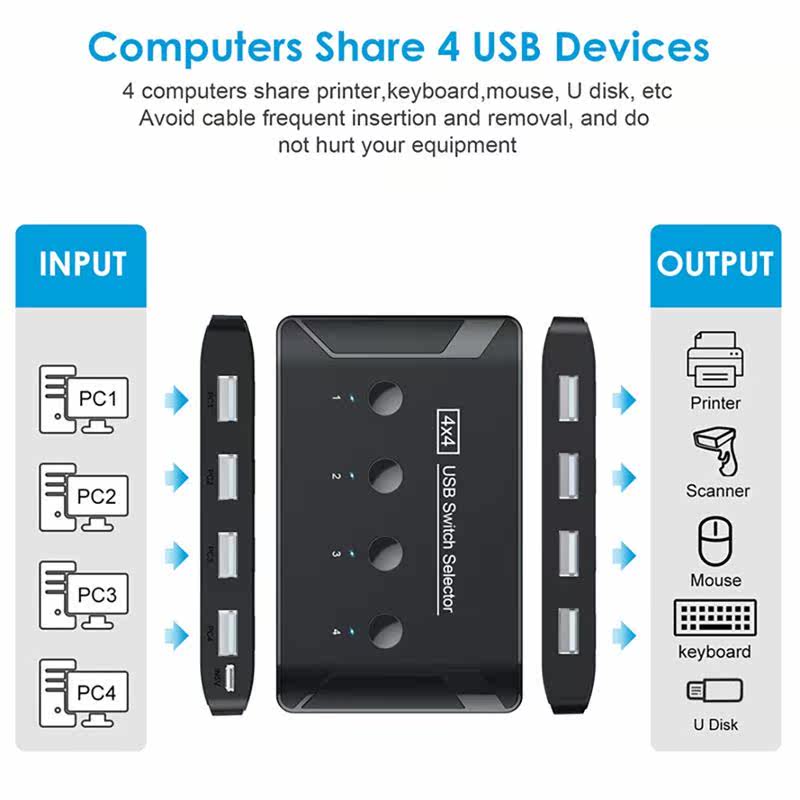 📚 T28 Switch US Switch 4 US Devices Peripheral Switcher 4 Po