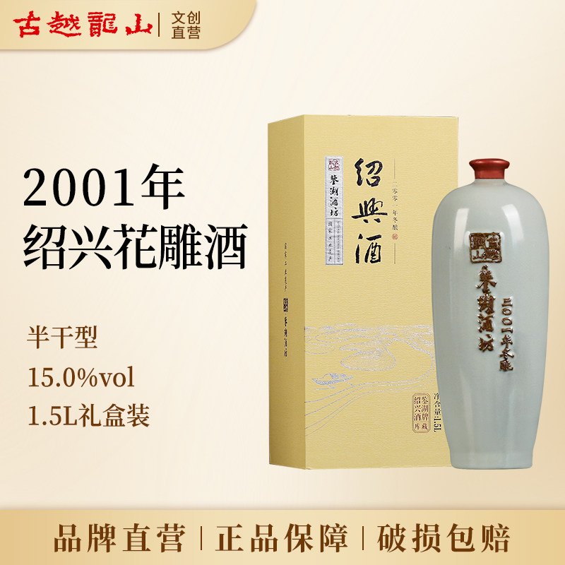 📚 古越龙山正宗绍兴老黄酒鉴湖2001年冬酿1.5L坛礼盒装半干型花雕酒
