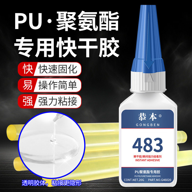 📚 恭本483塑料软态胶PU聚氨酯专用快干胶水粘优力胶PVC TPU橡胶金属木材玩具补鞋强力瞬间胶多功能502速干胶