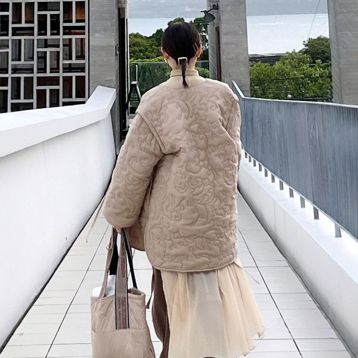 📚 淡色系女装 e@phi重头戏 2WAY可脱卸袖原创叶子刺绣绗棉棉衣外套