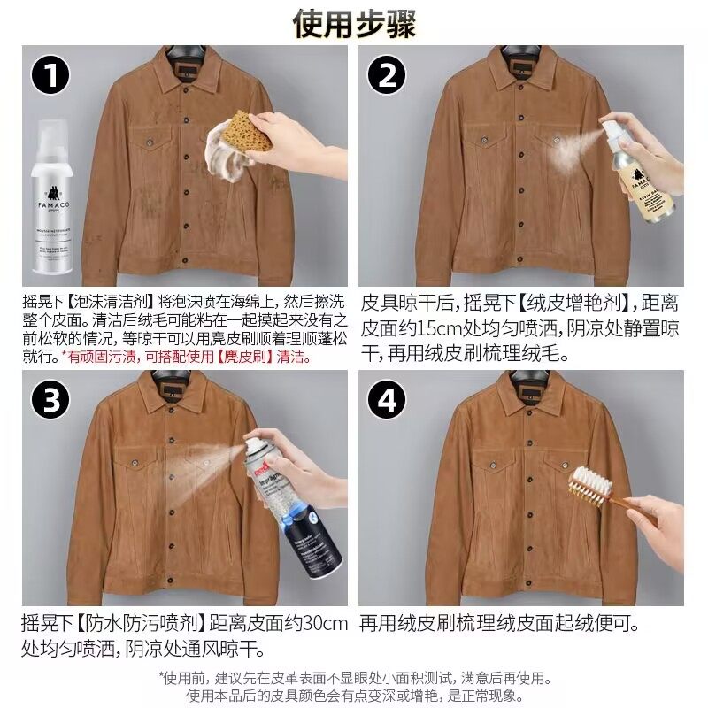 📚 FAMACO绒面皮猪皮皮衣包护理剂翻毛皮麂皮清洁皮毛一体保养油增艳