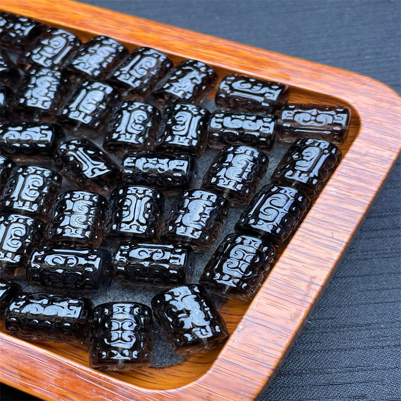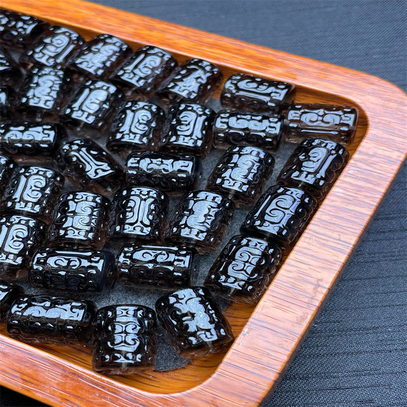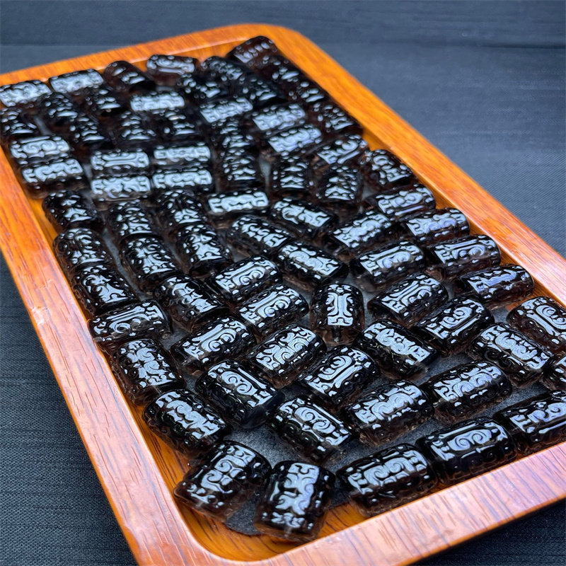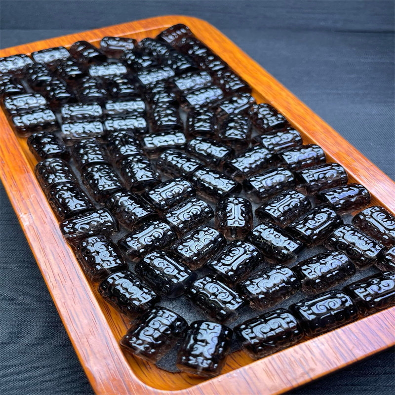 📚 冰种黑曜石回纹桶珠diy配件手工编织手绳项链文玩佛珠时尚配饰品