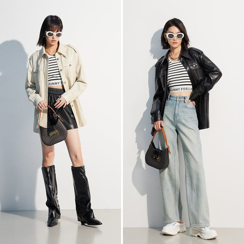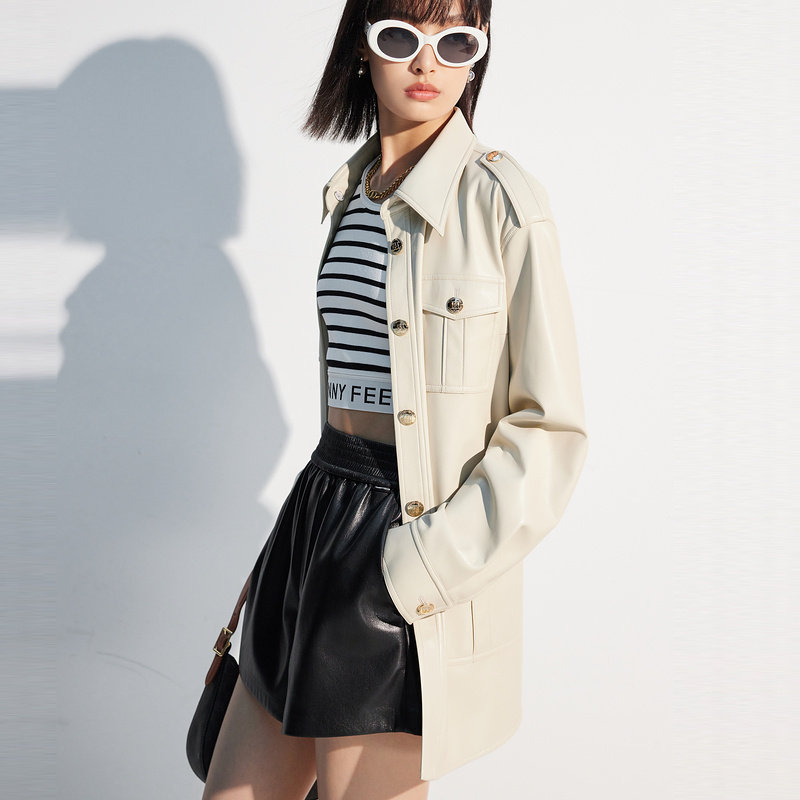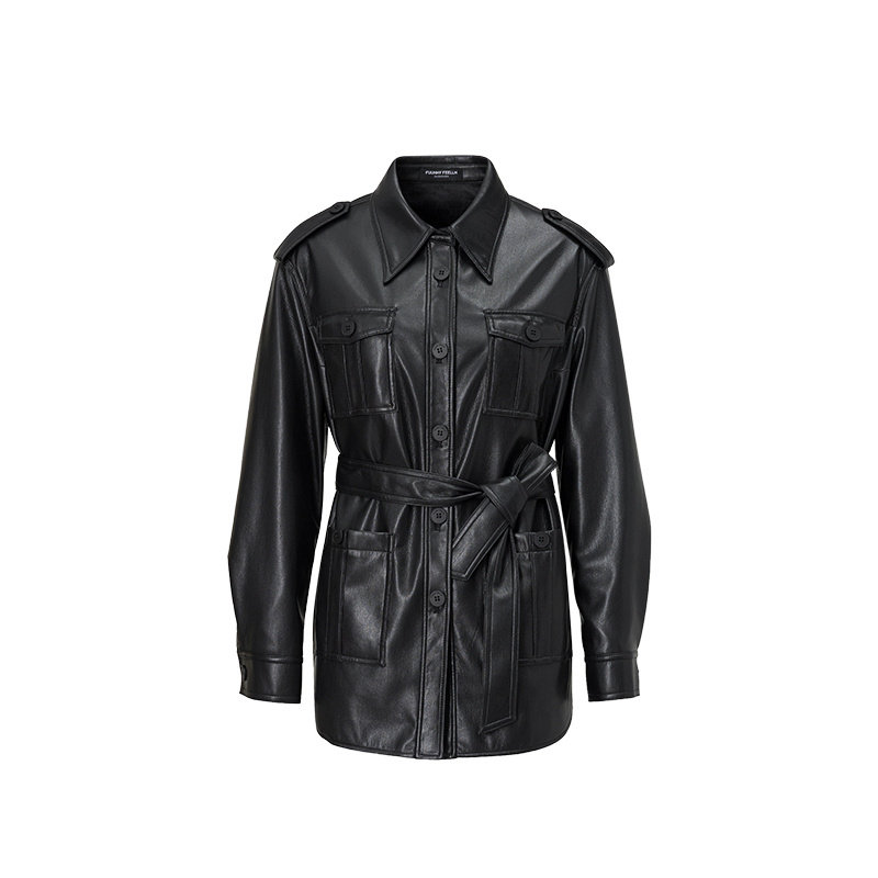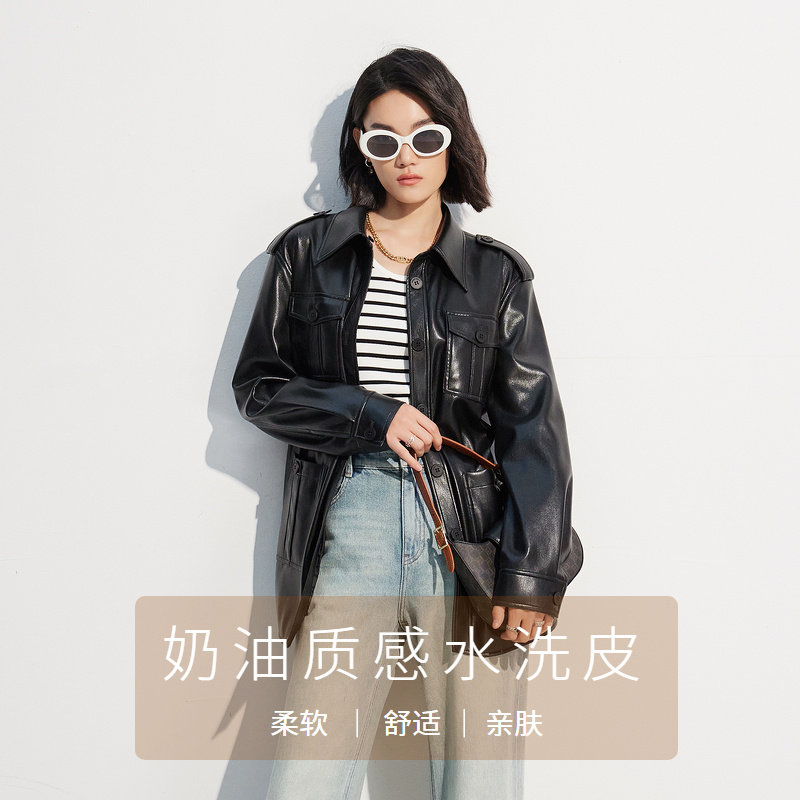 📚 商场同款FF||仿佛春夏季黑色机车酷飒上衣中性风皮衣外套女