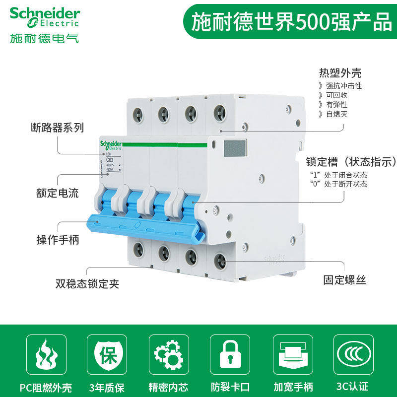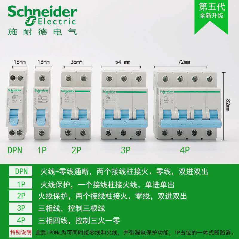 📚 施耐德空气开关断路器LS8漏电保护器两极63安总闸16A单片漏保20a