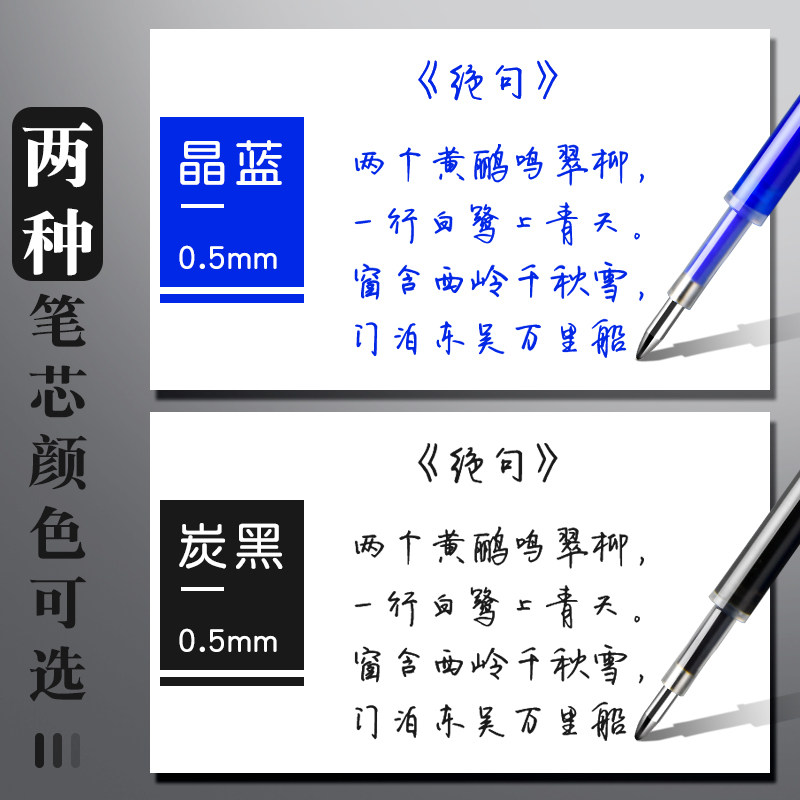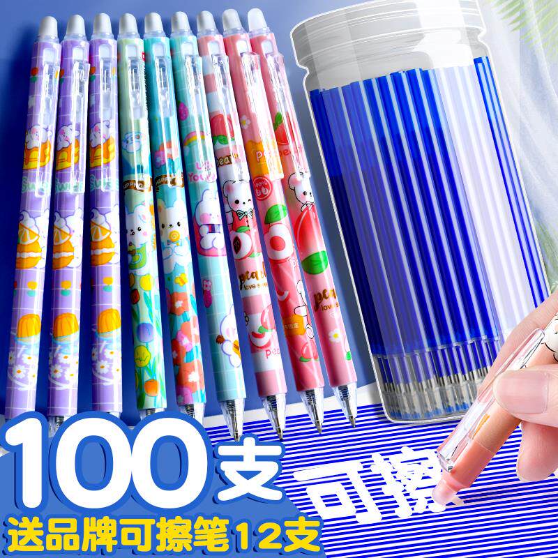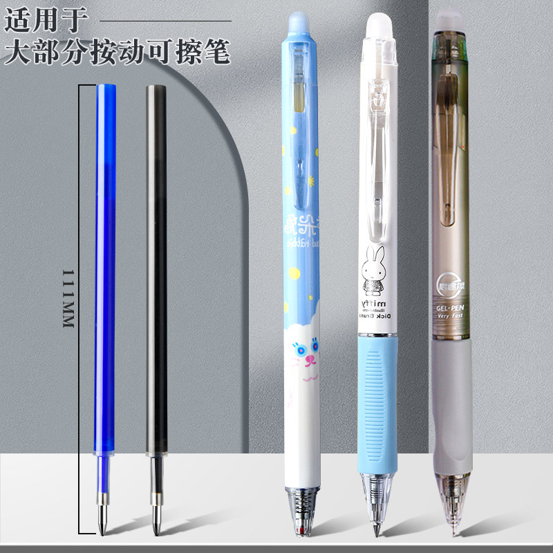 📚 100支按动可擦笔笔芯晶蓝色小学生专用摩磨易擦可擦中性笔三年级儿童魔力擦炭黑水笔高颜值可以擦掉的圆珠笔