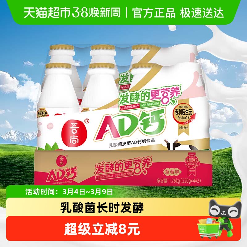 📚 [淘]吾尚经典发酵草莓味AD钙奶220g*8瓶儿童奶不添加防腐剂饮料