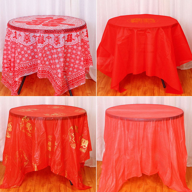 📚 结婚庆用品大全塑料红色加厚一次性餐具防水婚宴桌布家用四方台布