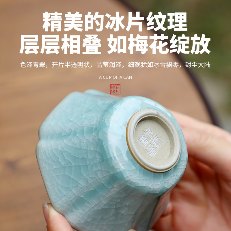 📚 天青色汝窑男士主人杯单杯开片可养茶具茶杯汝瓷功夫茶品茗杯茶盏