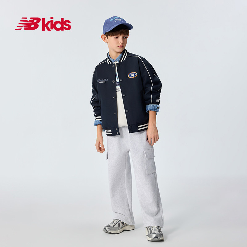 📚 NewBalance nb官方童装 4-14岁春秋新品条纹撞色梭织外套棒球夹克