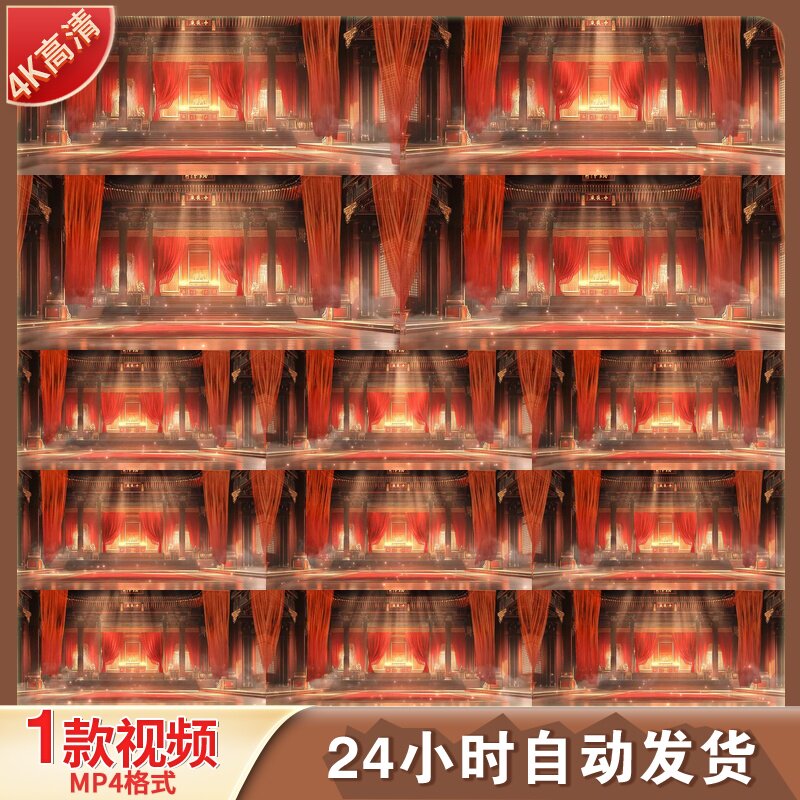 📚 高清6K古代皇宫室内舞台背景led大屏国风大气红色宫殿视频素材