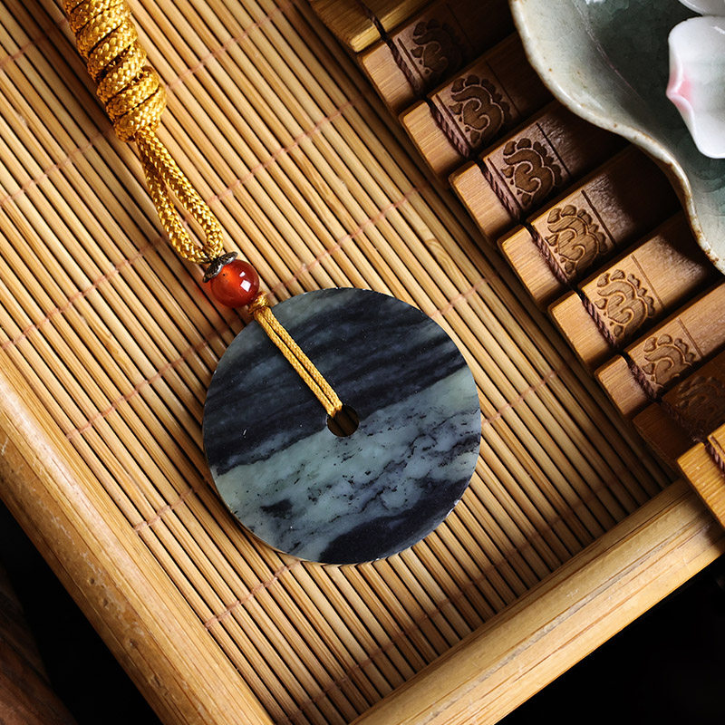 📚 玉缘和田玉新疆和田青花籽怀古平安扣吊坠玉质细腻30mm男女佩戴