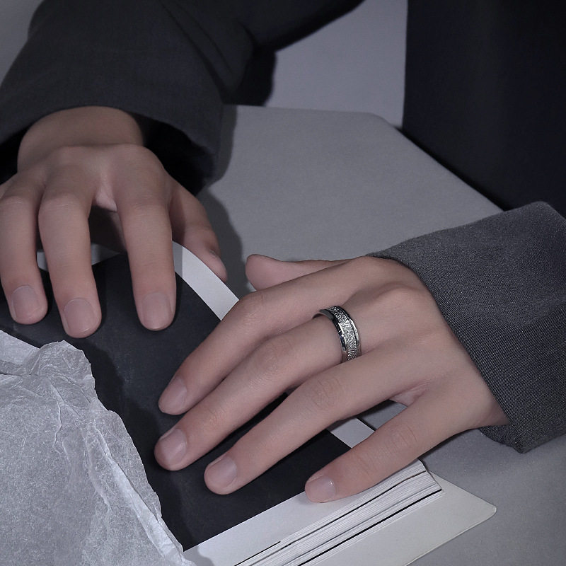 📚 原创错乱树枝钛钢雾凇纹戒指男潮女小众设计轻奢高级情侣男士指环