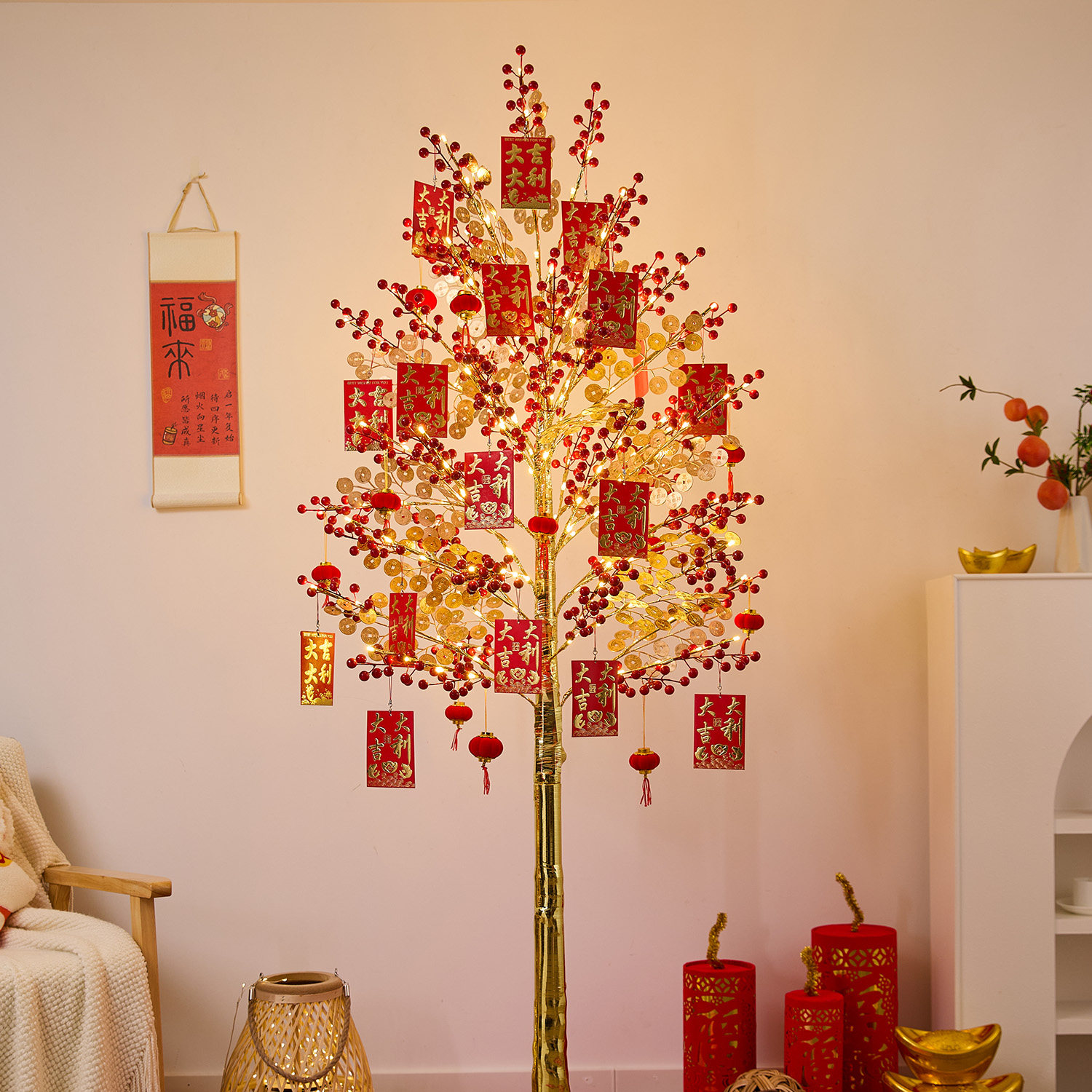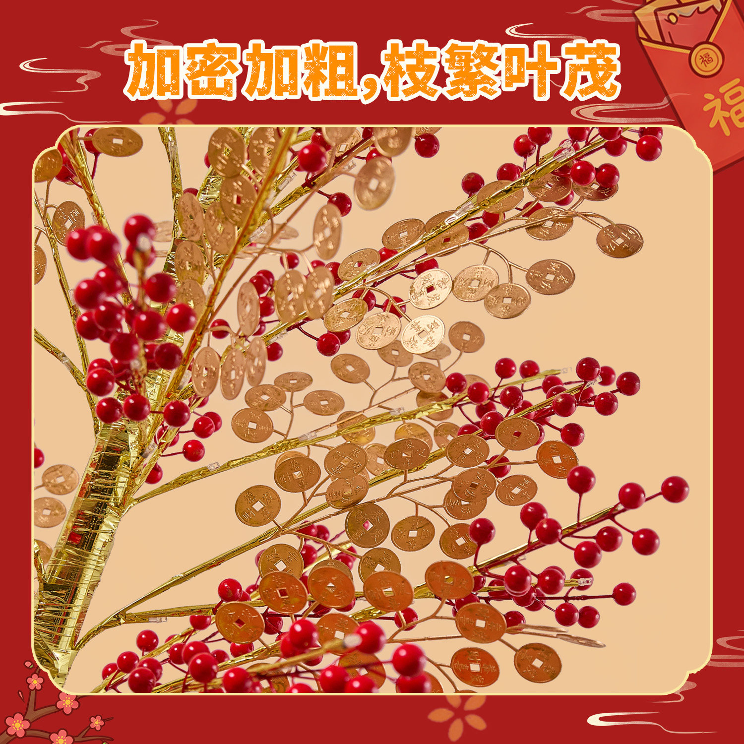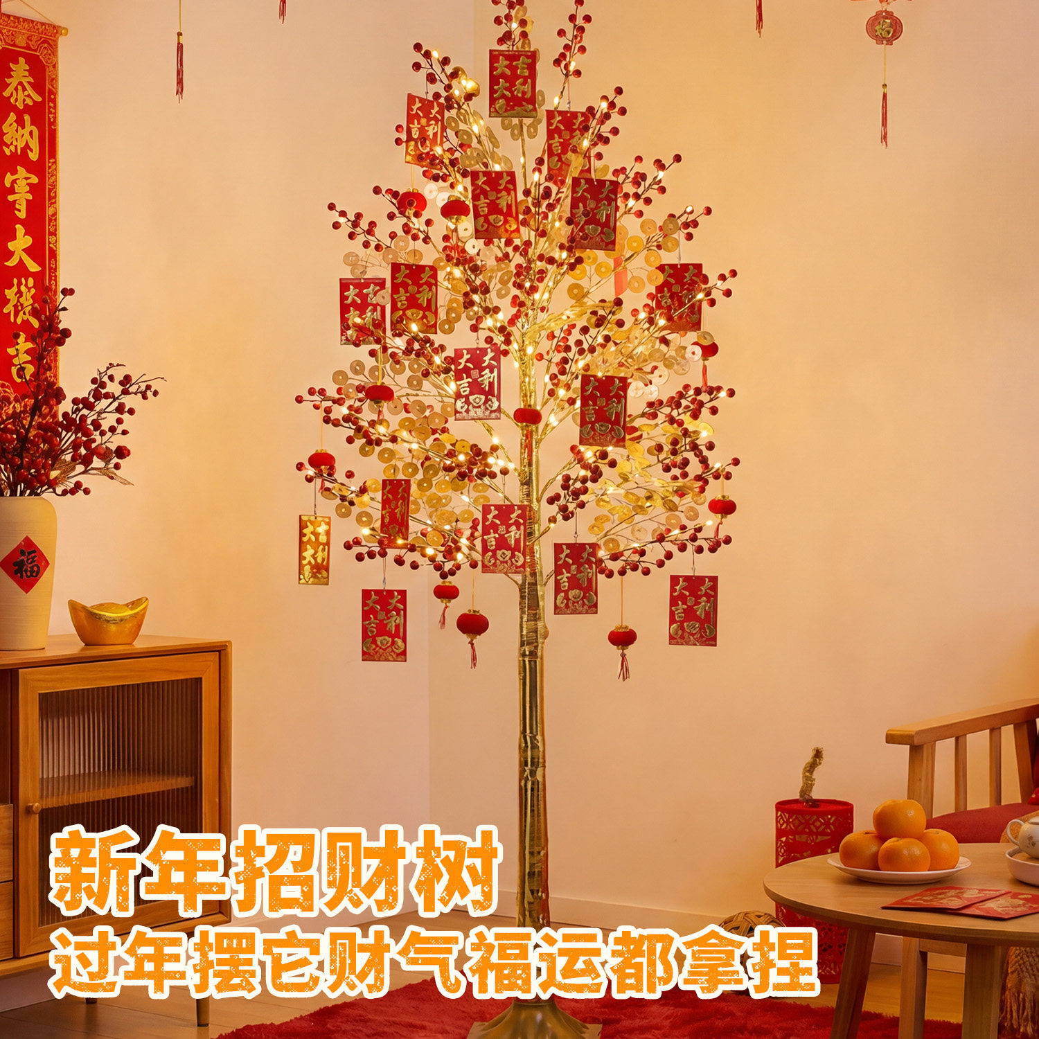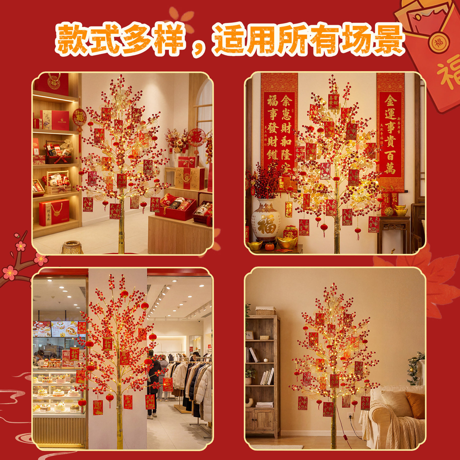 📚 新年装饰发光红果金币树灯客厅家用摆件喜庆氛围布置红包灯笼挂饰