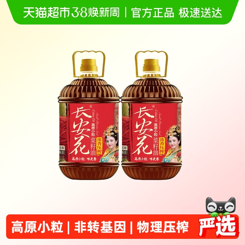 📚 长安花压榨浓香物理压榨菜子油低芥酸菜籽油5L*2桶家用醇香食用油