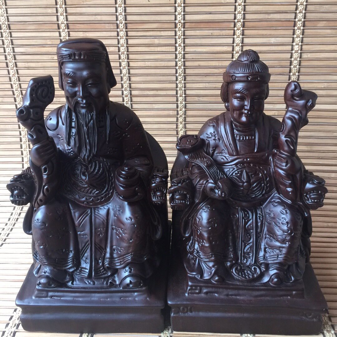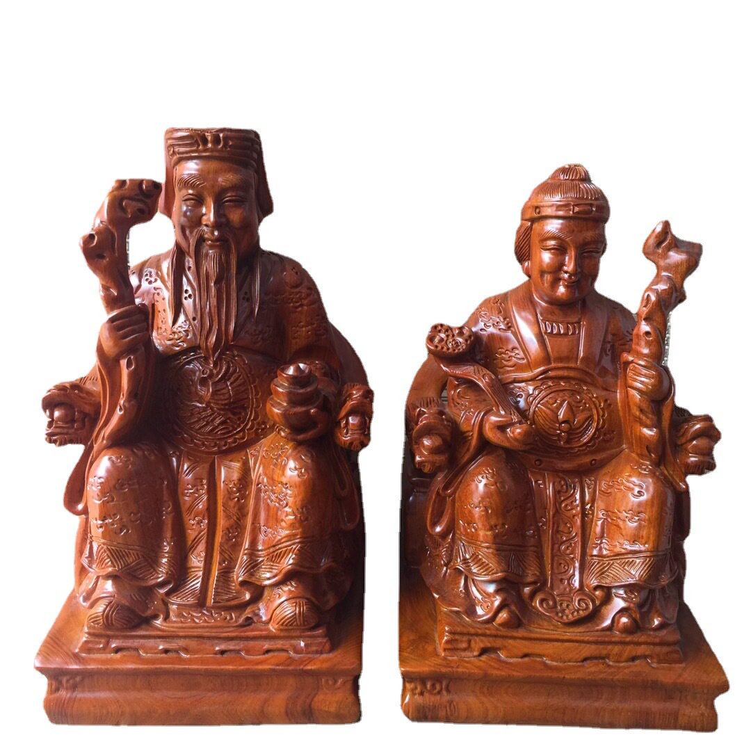 📚 金匠大作黄花梨木土地公土地婆文财神工艺黑檀木雕摆件红木客厅礼